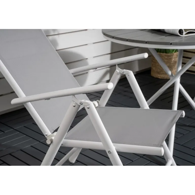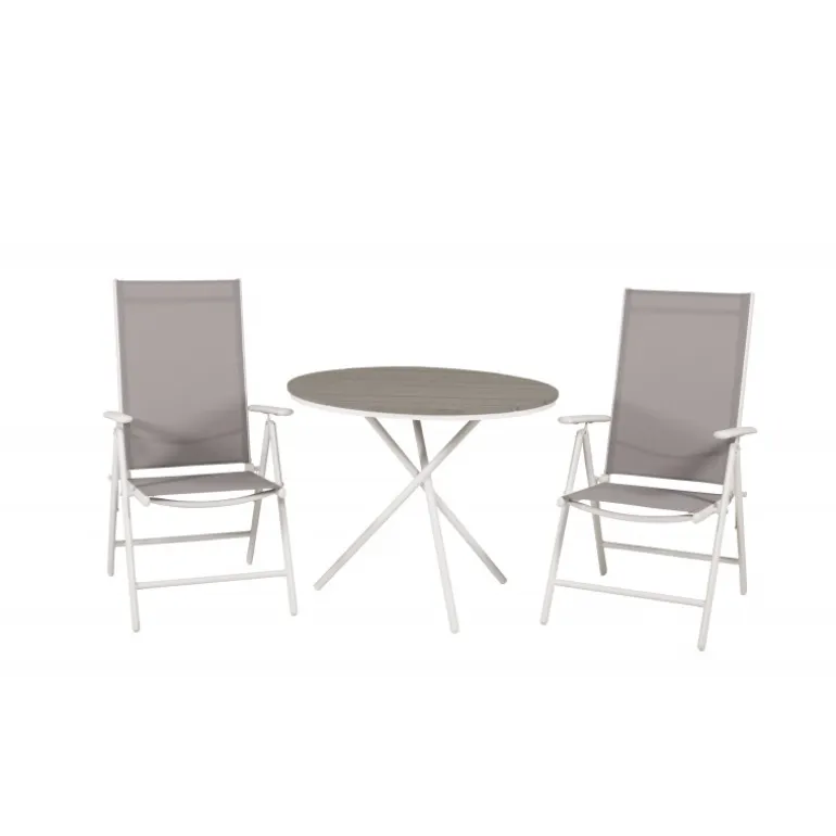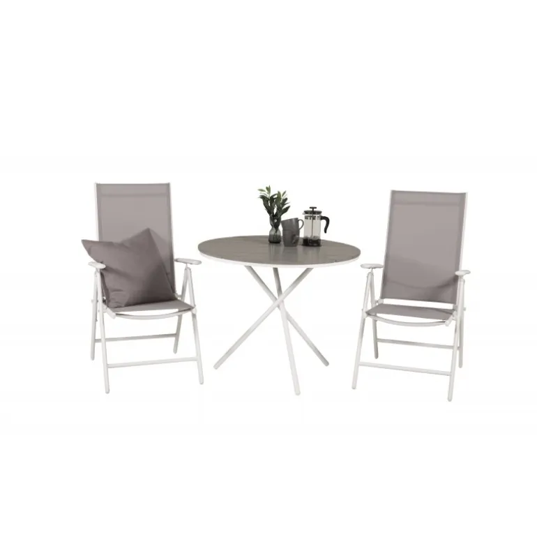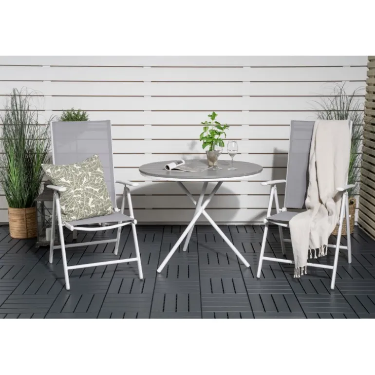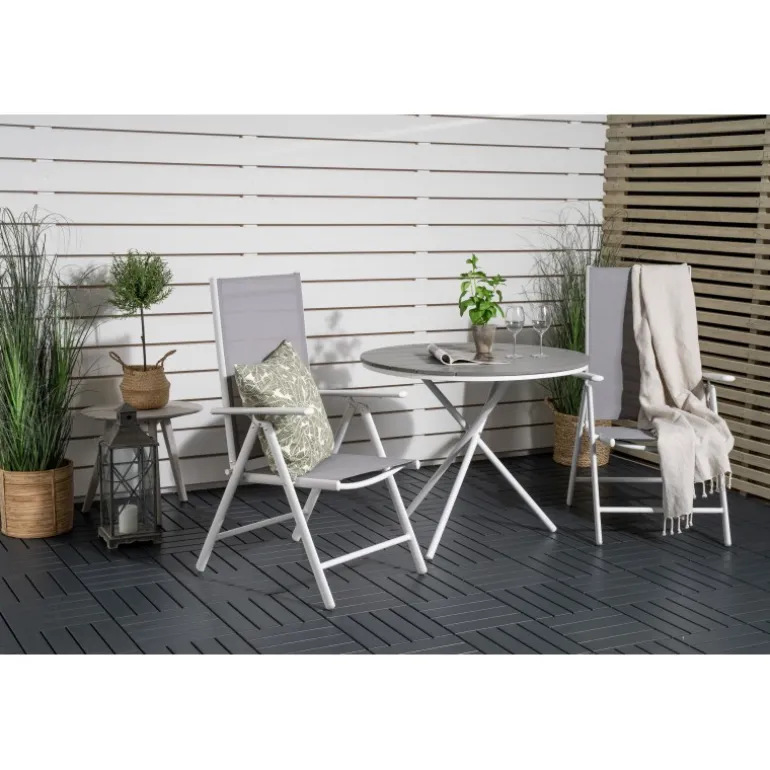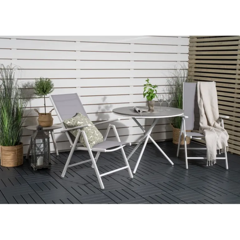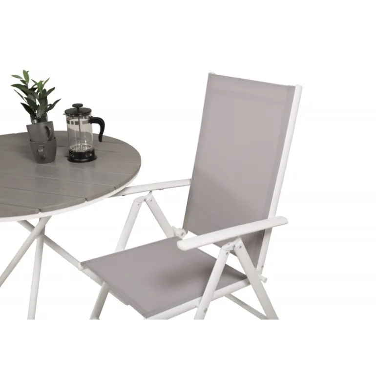 Det ser helt sikkert indbydende ud at tage eftermiddagskaffen i denne stilfulde og hyggelige Loungesæt – Havemøbelsæt! Vores mindre runde spisebord Parma er ideelt til den solrige plads, når figenen er ved at springe ud. Her sammen med de funktionelle spisebordsstole Break med foldbar ryglæn – her sidder man gerne længe og nyder godt selskab!