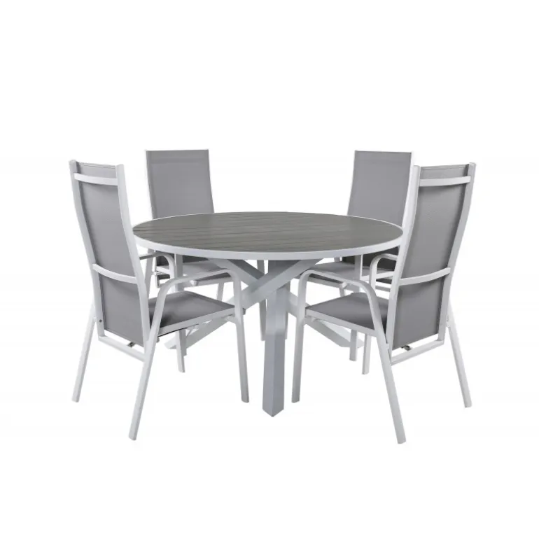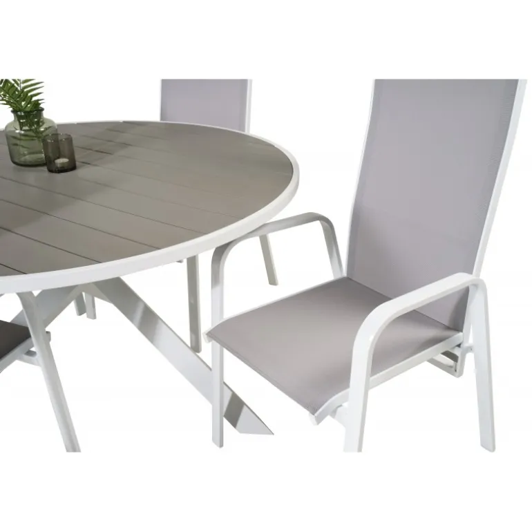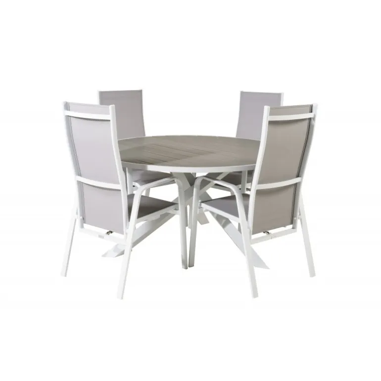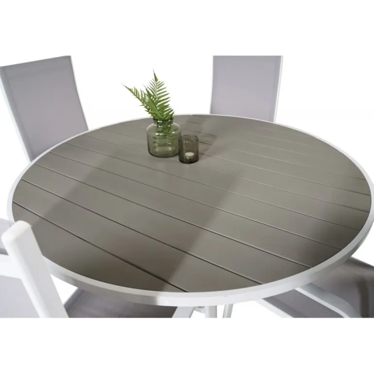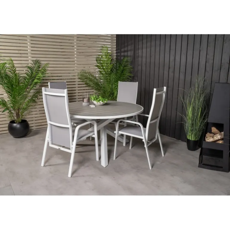 Skab en hyggelig atmosfære på terrassen eller altanen med vores Parma Rundt Loungesæt – Havemøbelsæt. Dette elegante sæt kombinerer vores stilfulde Parma spisebord med de komfortable Copacabana stole. Perfekt til udendørs brug, dette sæt er designet til at være både funktionelt og æstetisk tiltalende. Bordpladen er lavet af aintwood, mens stolenes rammer består af holdbart aluminium og textilene. Nyd dine måltider udendørs med dette moderne og holdbare Loungesæt – Havemøbelsæt.