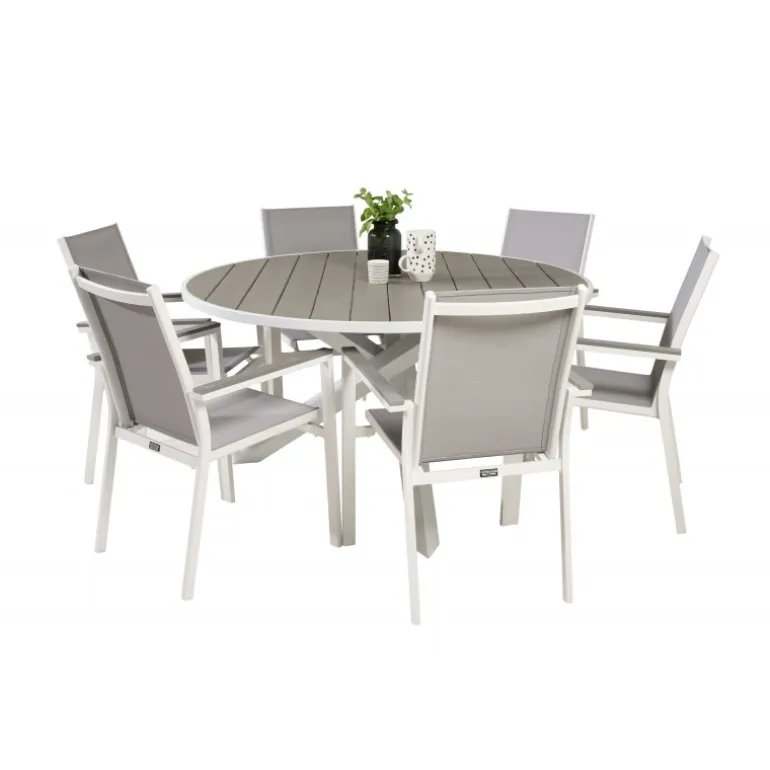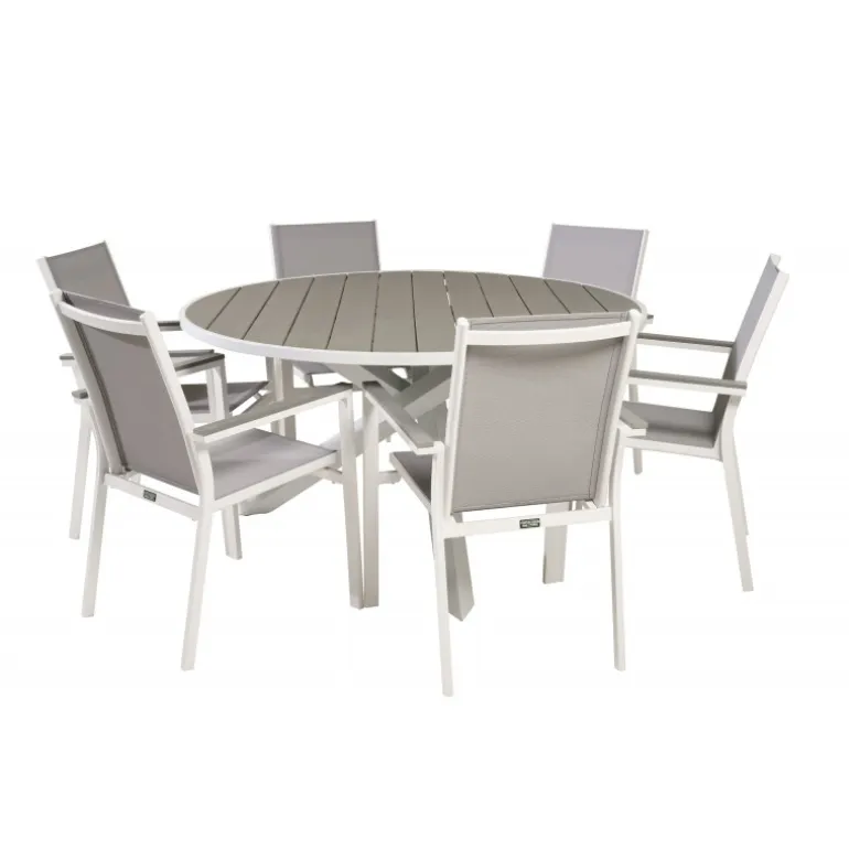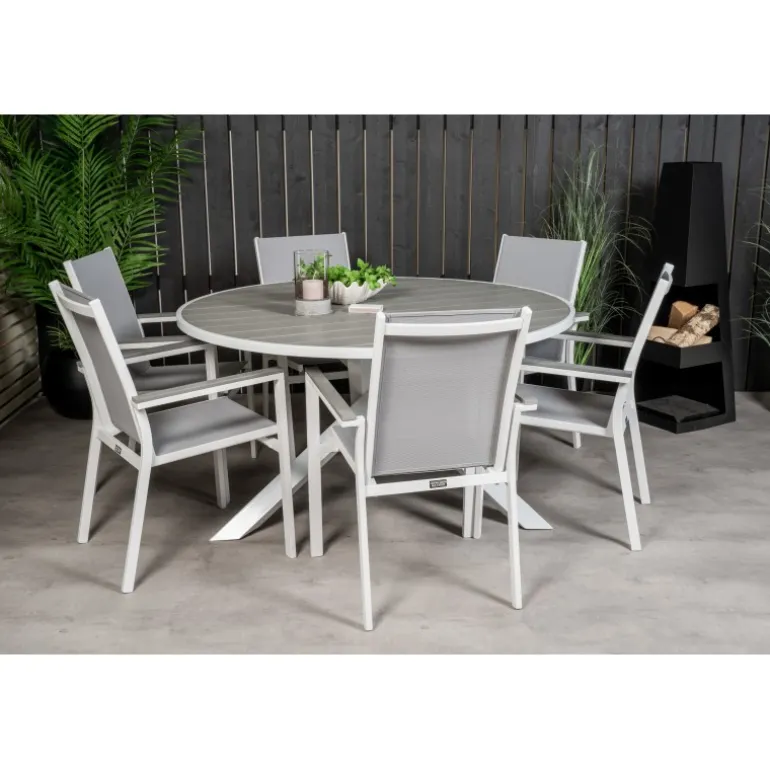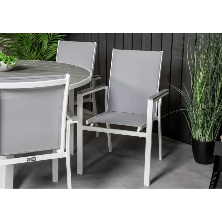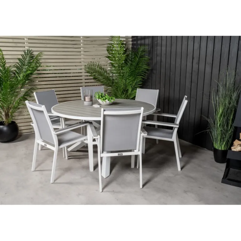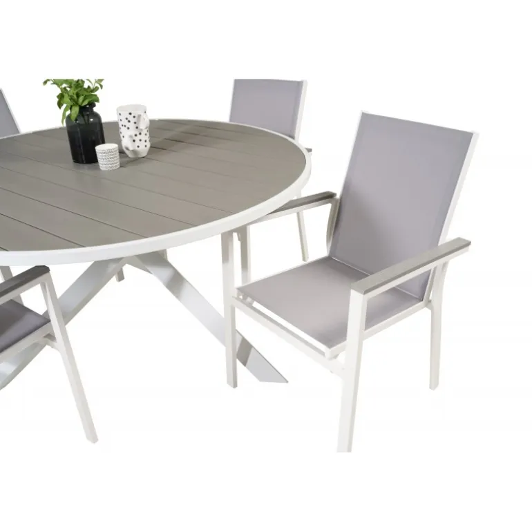 Det klassiske Parma-spisebord passer perfekt på de fleste terrasser. Her er bordet kombineret med spisebordsstole i samme serie. Loungesæt – Havemøbelsætn er ideel til dem, der ønsker at skabe en hyggelig og moderne atmosfære på terrassen. Bordpladen er lavet af aintwood, et materiale, der giver et elegant og holdbart udseende. Husk at beskytte møblerne mod høj varme og direkte sollys for at undgå deformering og skader.