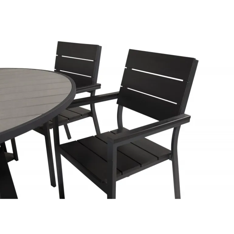 Indret din terrasse med dette stilfulde Loungesæt – Havemøbelsæt! Vores runde spisebord Parma giver en familiær følelse. Her sammen med sorte træstole i Levels-serien. Forlæng den solrige frokost i et komfortabelt Loungesæt – Havemøbelsæt!
