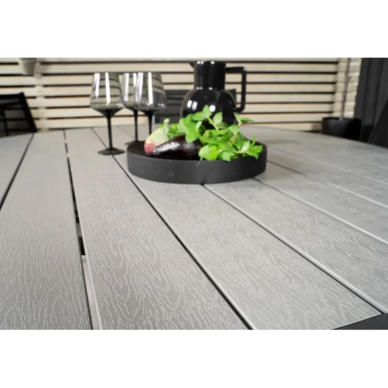 - Praktisk og Pladsbesparende: Rundt borddesign, perfekt til mindre terrasser.