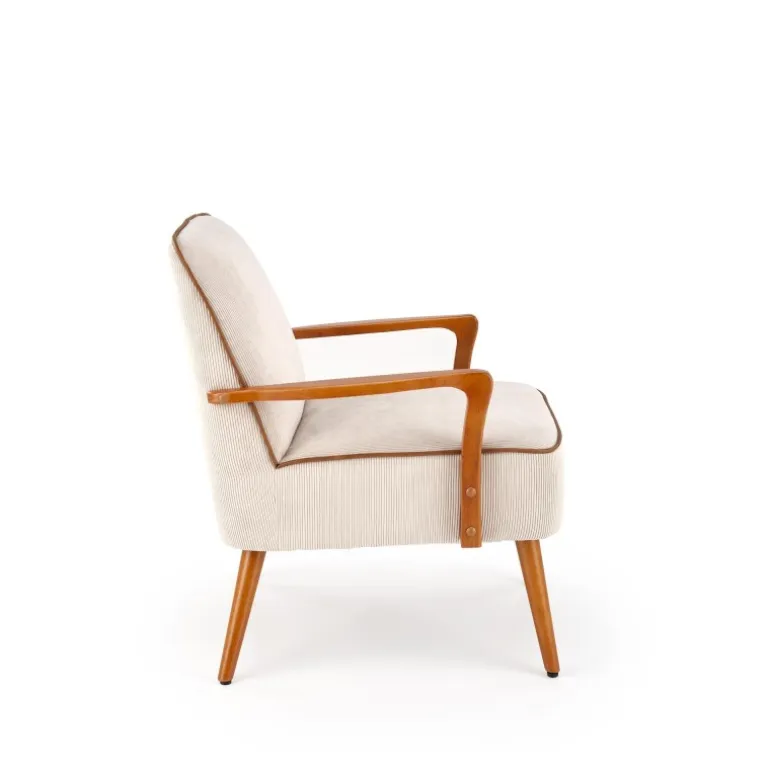 - Elegant design: Lys beige klæde kombineret med lys valnød træramme.