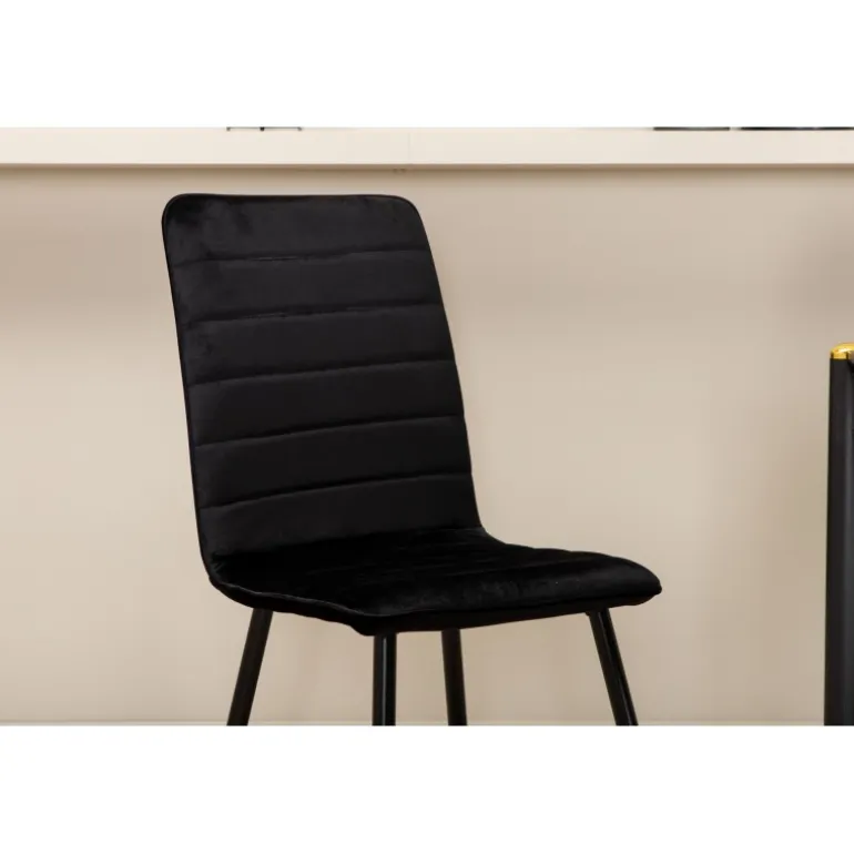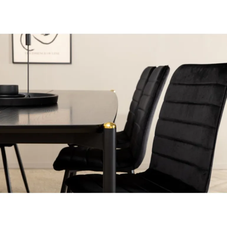 - Eksklusivt materiale: Sorte fløjlstole og MDF bordplade med finer.