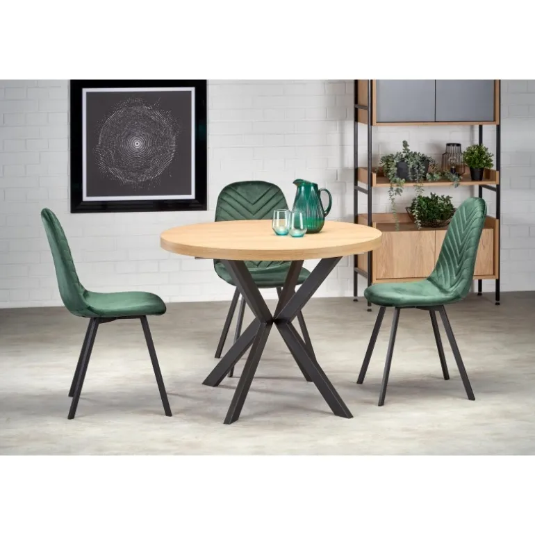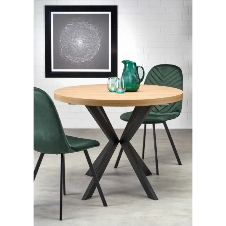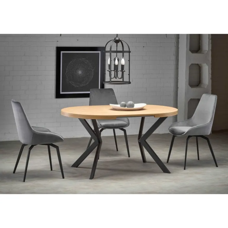 Oplev PERONI bord gylden eg/Sort, det ideelle valg til moderne hjem. Dette Spisebord med udtræk er designet med en elegant kombination af lamineret spånplade og pulverlakeret stål, hvilket giver både stil og holdbarhed. Med dimensionerne fi100-250/100/75 cm tilbyder dette bord fleksibilitet til både små og store rum. Farverne gylden eg og Sort tilføjer en sofistikeret og tidløs æstetik til dit spiseområde.
