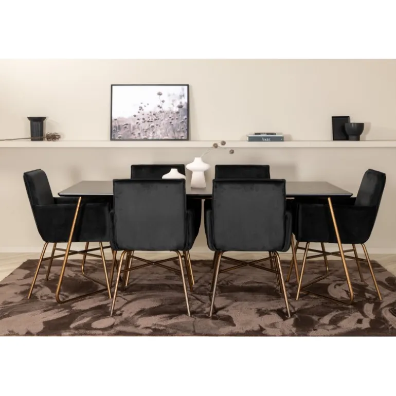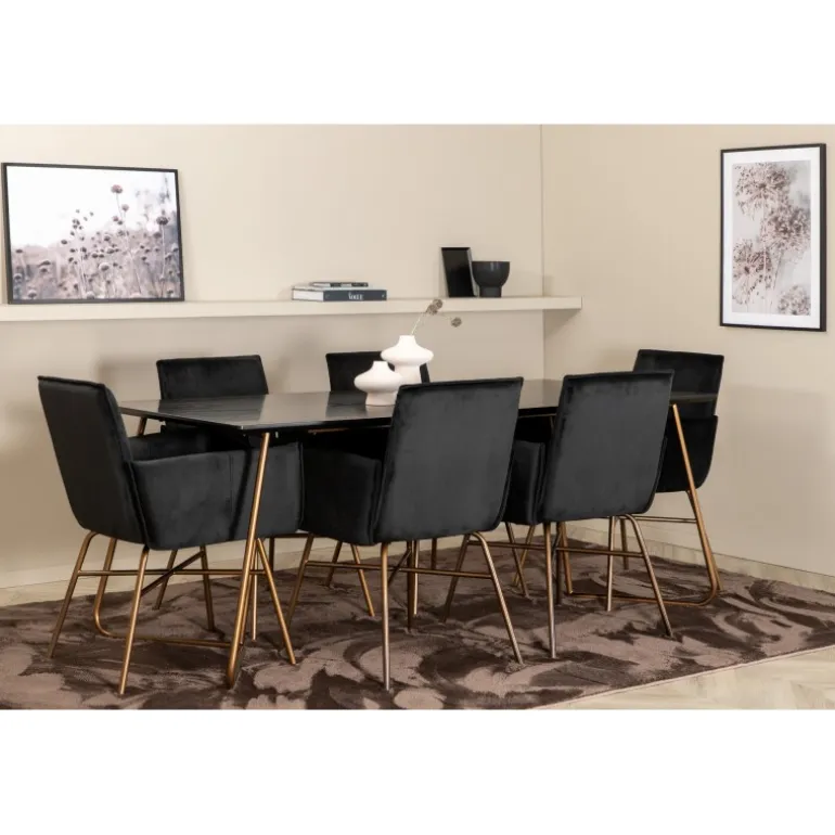 - Komplet sæt: Inkluderer 6 komfortable Petra spisebordsstole i sort fløjlstof.