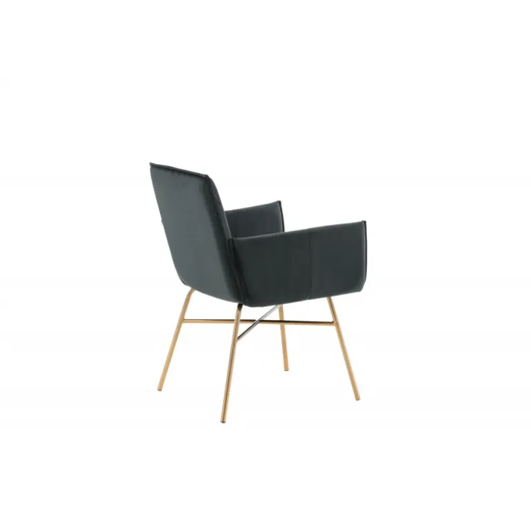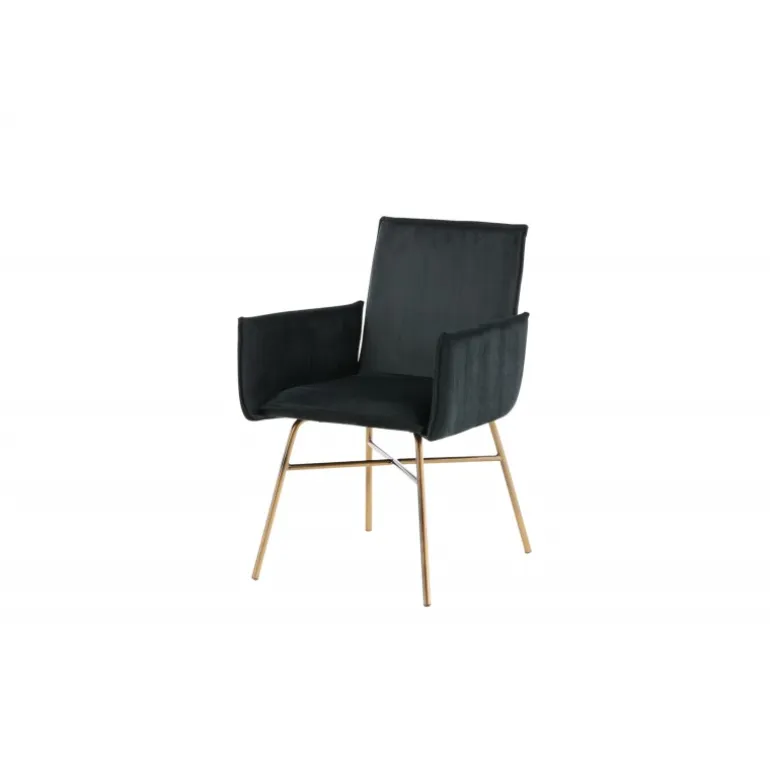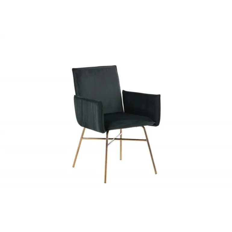 Petra – En moderne drøm af en stol, der imponerer med både komfort og stil! Det gennemførte design, rene nordiske linjer og robuste konstruktion giver et moderne og personligt præg til rummet. Stolen har en sort ryg og sæde i blødt velour og polyester stof, hvilket bidrager til god komfort. Stolens ben er dekorative og slanke, lavet af kobberfarvet jern, hvilket tilføjer en flot detalje. Indret hjemmets hjerte på en moderne, komfortabel og praktisk måde! Nogle samling kræves. Plejeinstruktioner: Velour får let aftryk, når luven lægger sig. Disse aftryk kan få stoffet til at se slidt ud, hvilket er helt normalt for denne type materiale. Afhængigt af hvordan lyset falder, kan stoffet skifte i flere forskellige nuancer.