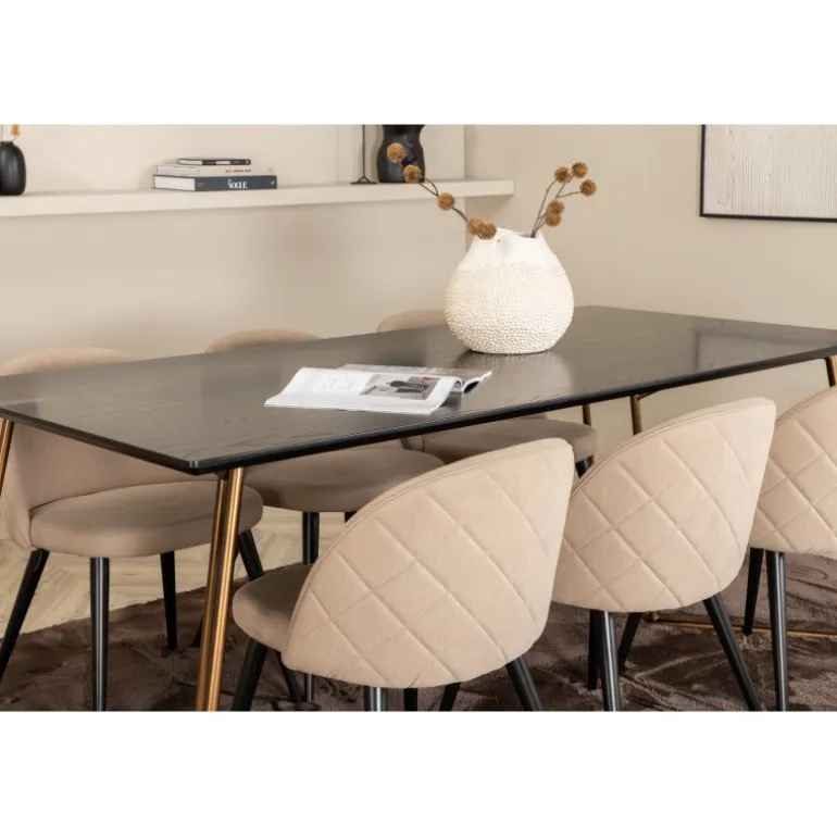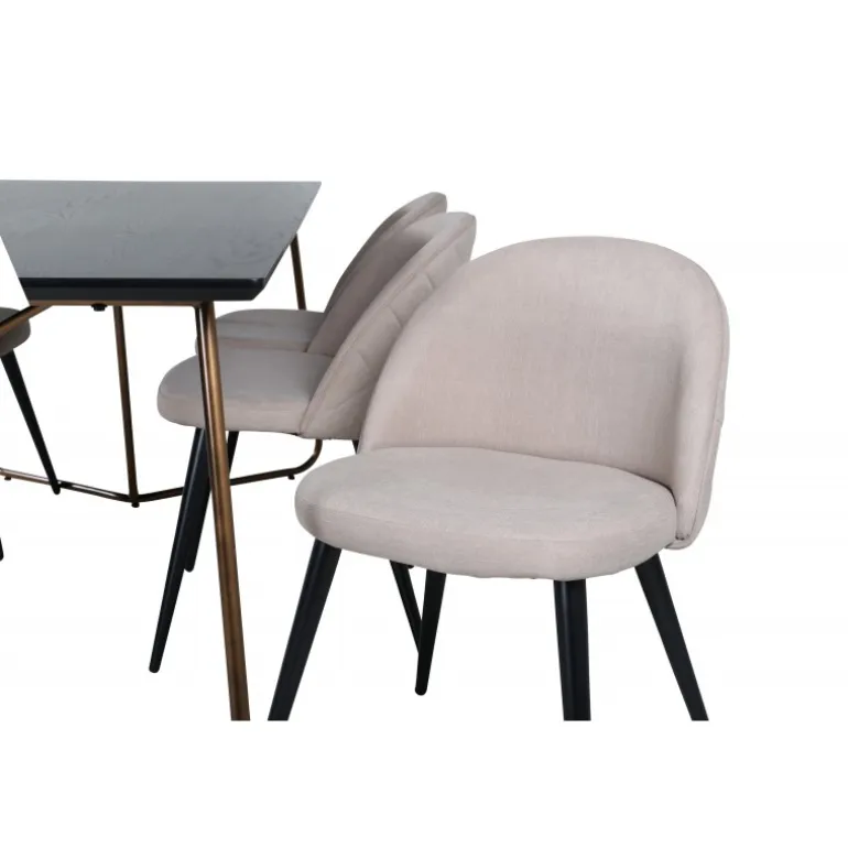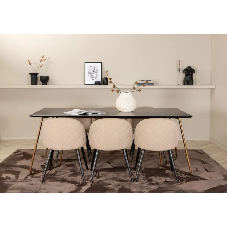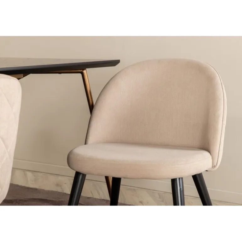 - Komplet sæt: Inkluderer 6 Velvet spisebordsstole med sorte metalben og beige sæder i polyesterlin.