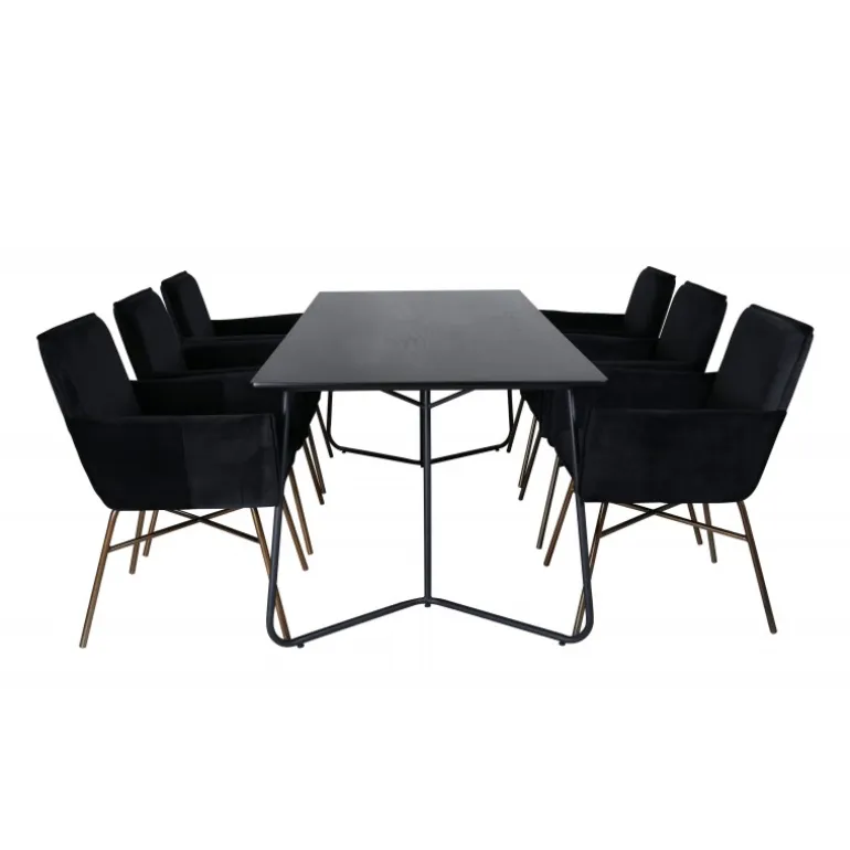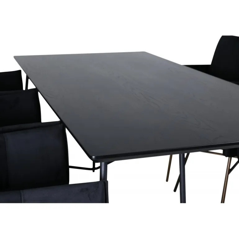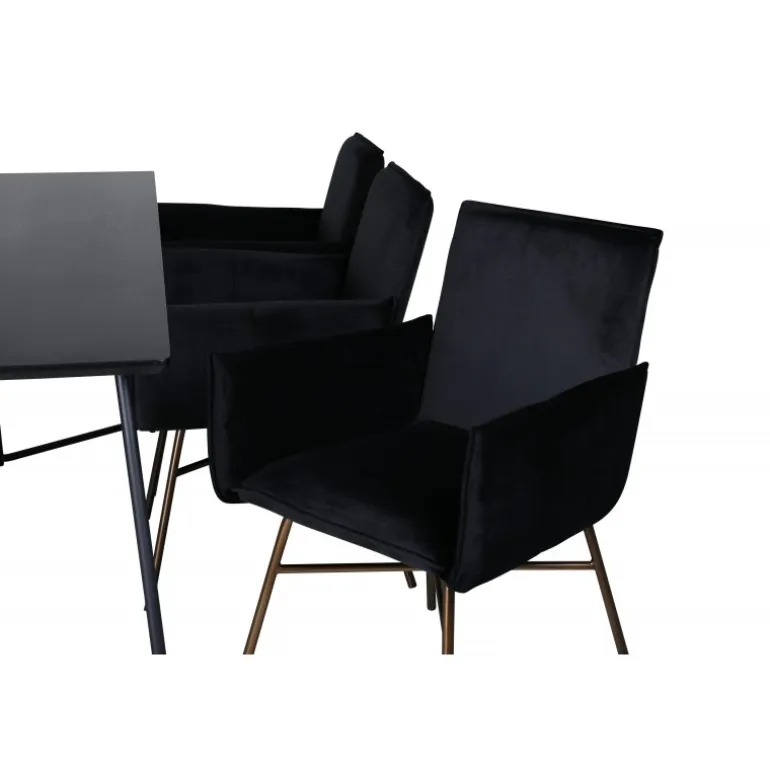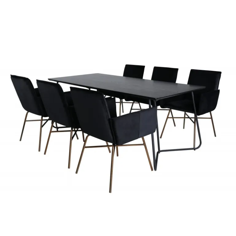 - Blødt velourstof: Stolene er betrukket med sort velourstof, der tilføjer luksus til enhver middag.