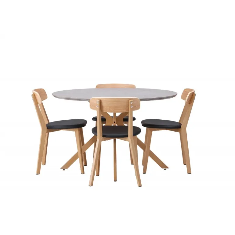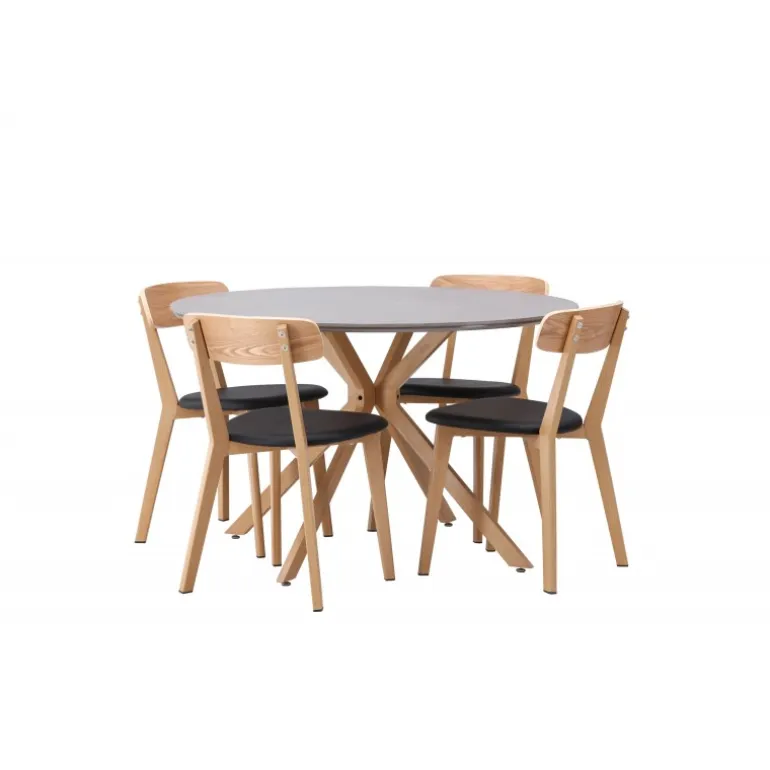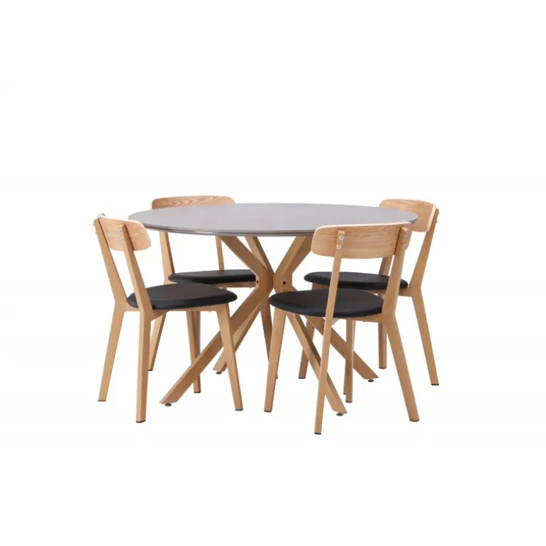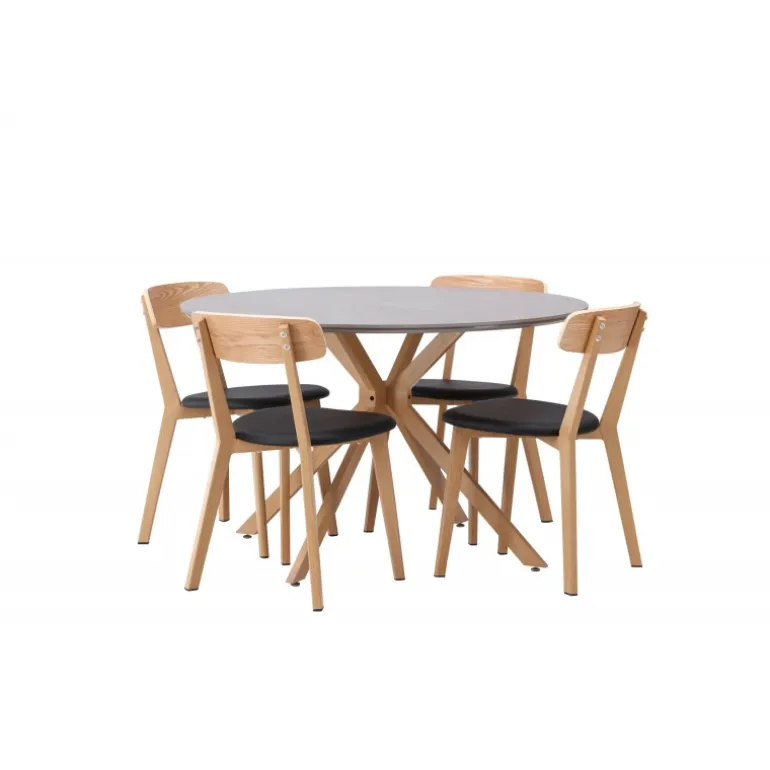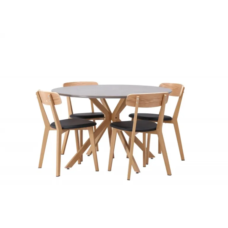Oplev den perfekte kombination af stil og funktionalitet med vores eksklusive Spisebordssæt. Med det elegante Piazza bord og de moderne Sanjos stole skaber du en indbydende atmosfære til måltider og sammenkomster i dit hjem. Piazza bordet har en imponerende diameter på 120 centimeter, hvilket giver rigelig plads til familie og venner. Lavet af robust spraystone og med ståleben, forener det moderne design med stil. Den elegante grå farve tilføjer et strejf af sofistikering til dit rum. Sanjos stolene kommer i en naturlig farve, der tilbyder en tidløs og moderne følelse til din spisestue. Deres enkle, men elegante design komplementerer perfekt stilen på Piazza bordet. Uanset om det er en intim middag med familien eller en festlig sammenkomst med venner, tilbyder vores Spisebordssæt det perfekte sted til enhver lejlighed. Med Piazza bordet og Sanjos stolene kan du skabe en harmonisk atmosfære, hvor minder skabes og deles. Opgrader din spisestue i dag, og lad vores Spisebordssæt blive hjertet i dit hjem.
