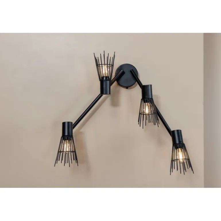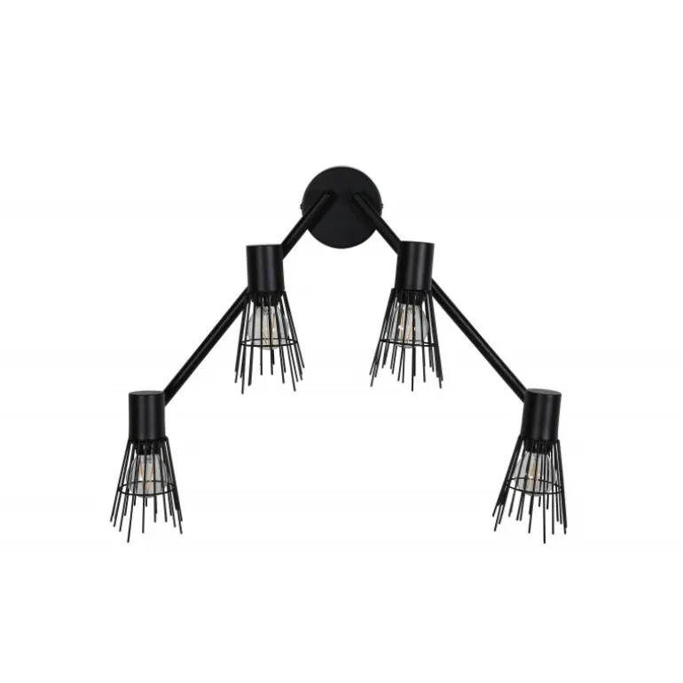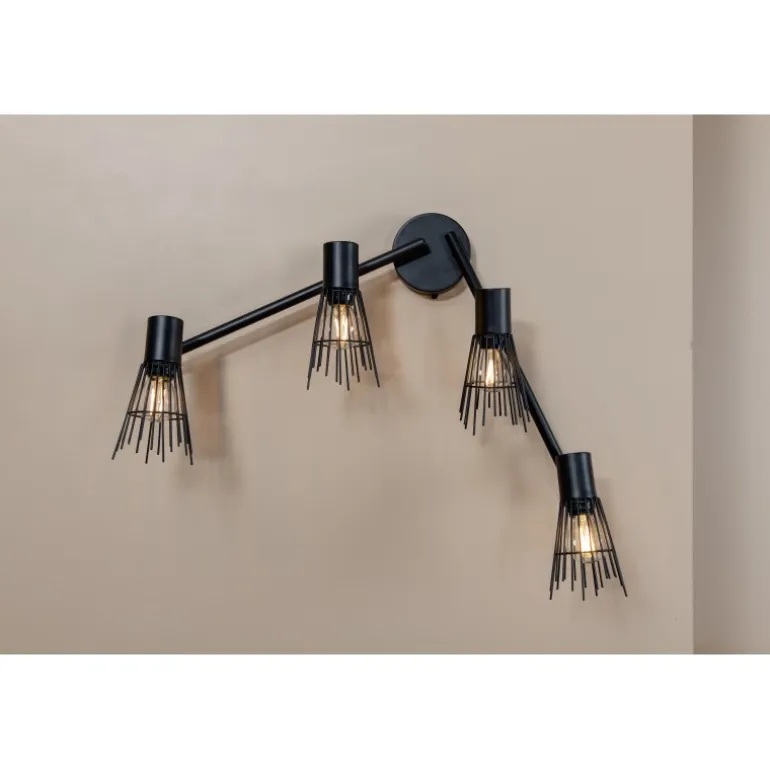 - Enkelt design: Sort stålbeslag med fire lyskilder.