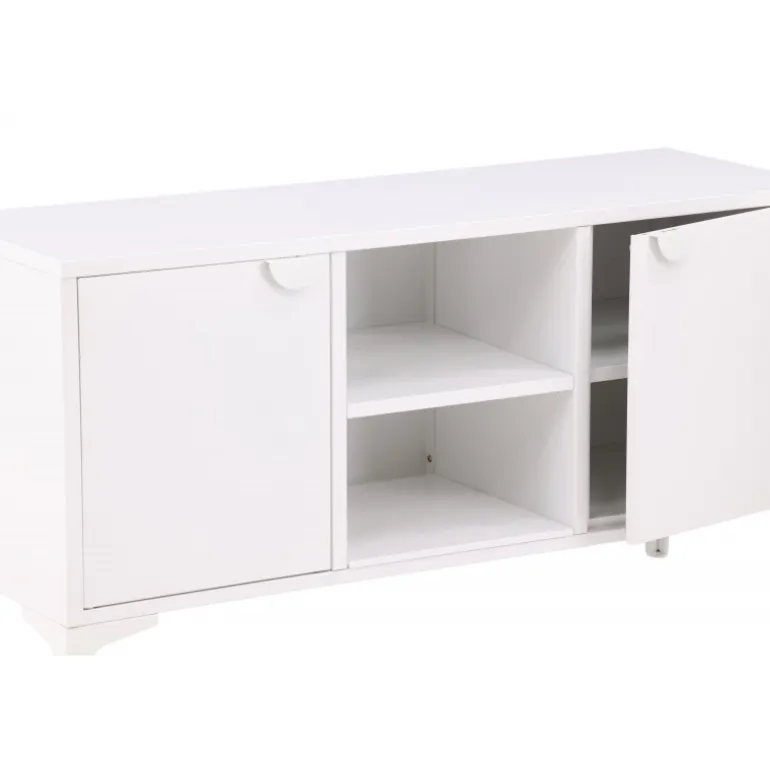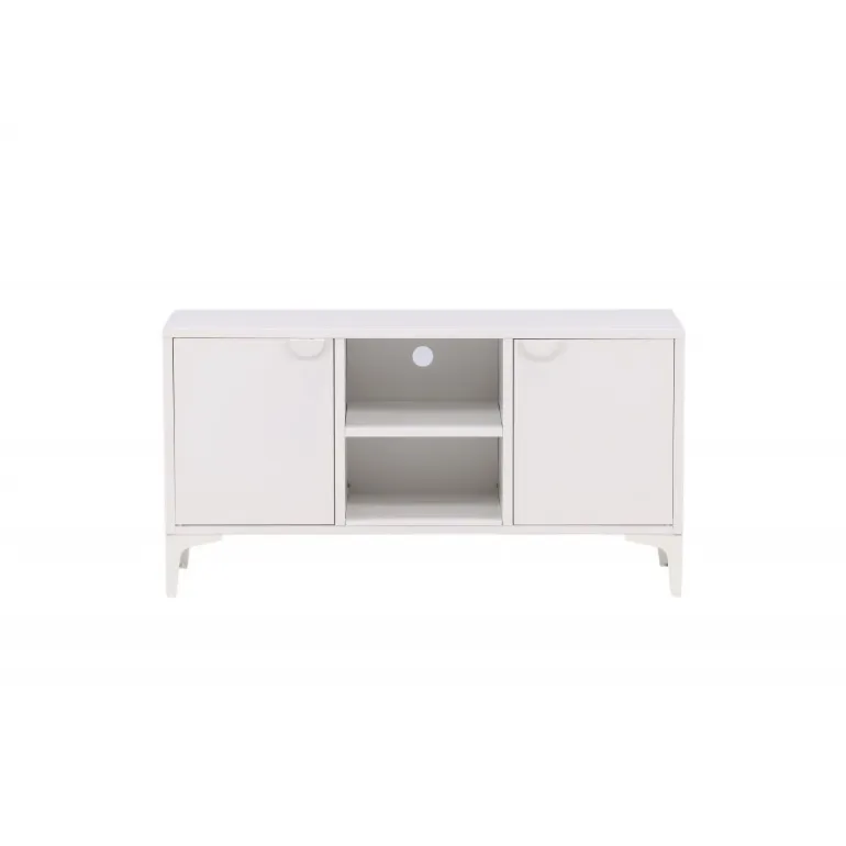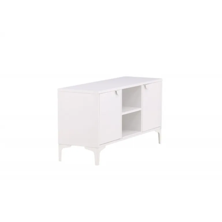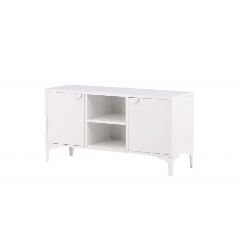 Den perfekte TV-bænk til det moderne og smarte hjem! Denne bænk fra serien Piring er lavet af hvidt stål og har en praktisk dybde, der muliggør masser af opbevaring. Bænken har to hylder med to rum til skjult opbevaring og et center med åben opbevaring – perfekt til stilfulde detaljer såsom en moderne vase eller bog. Designet er simpelthen utrolig gennemtænkt og i overensstemmelse med trenden samt tidløs!