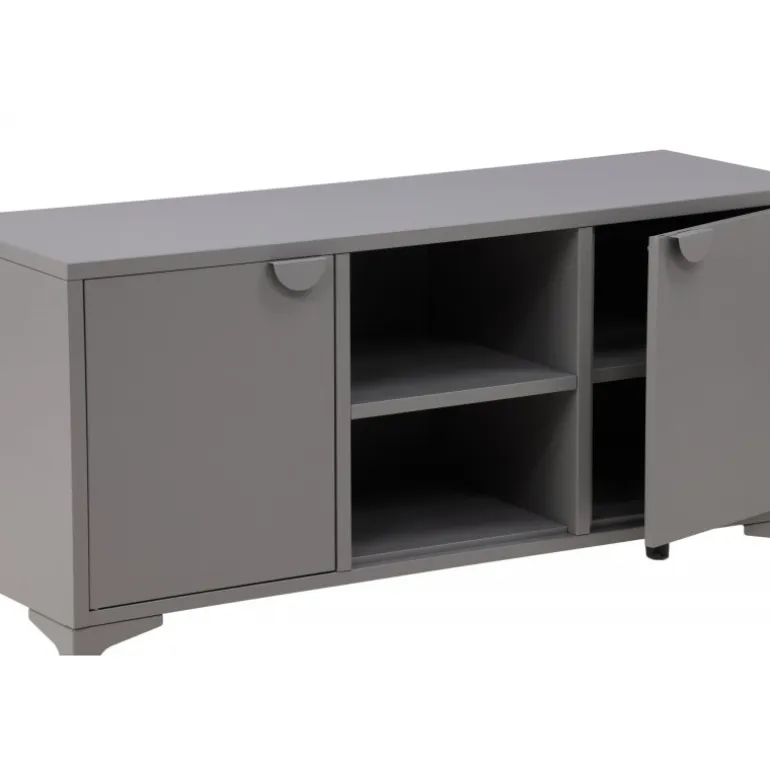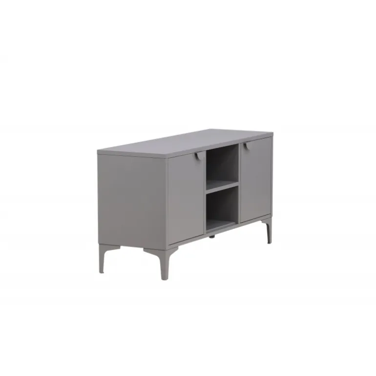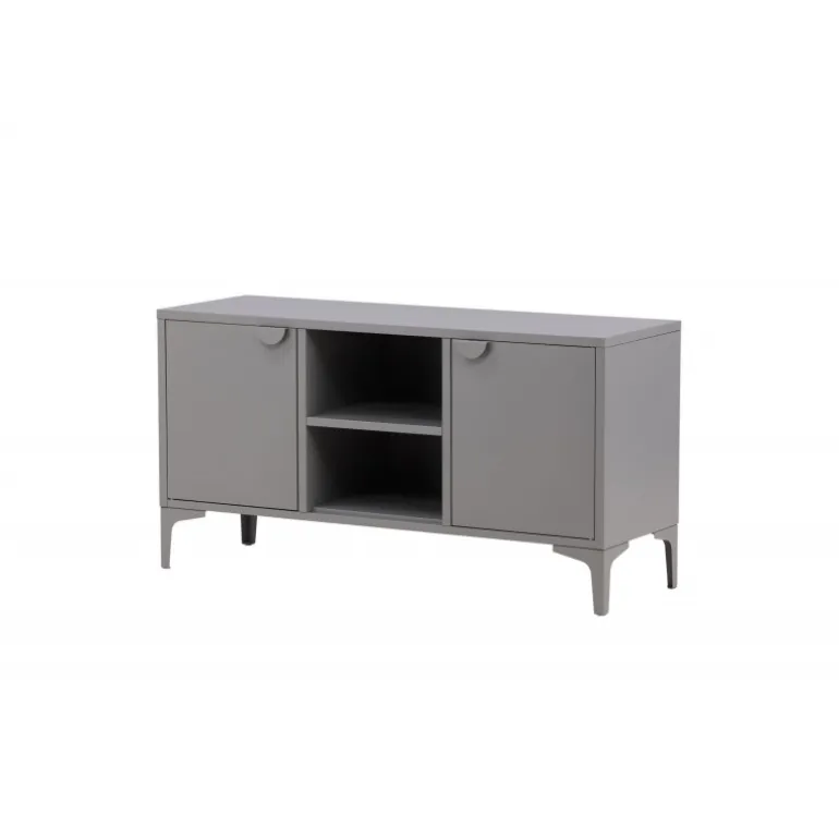 Den perfekte TV-bænk til det moderne og smarte hjem! Denne bænk fra serien Piring er lavet af grå stål og har en praktisk dybde, der muliggør masser af opbevaring. Bænken har to hylder med to rum til skjult opbevaring og et center med åben opbevaring – perfekt til stilfulde detaljer som en moderne vase eller bog. Designet er simpelthen utroligt velgennemtænkt og i tråd med både trenden og det tidløse!