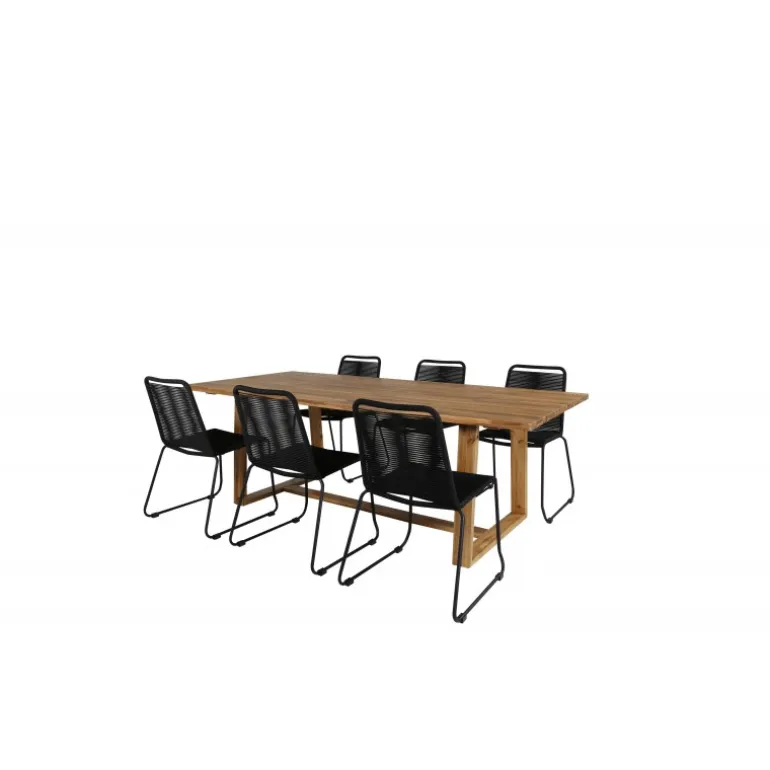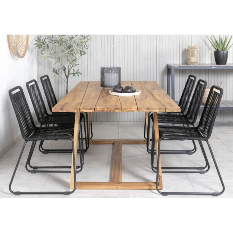 - Lindos spisestole: Komfortable stole i sort reb, der komplementerer bordet perfekt.