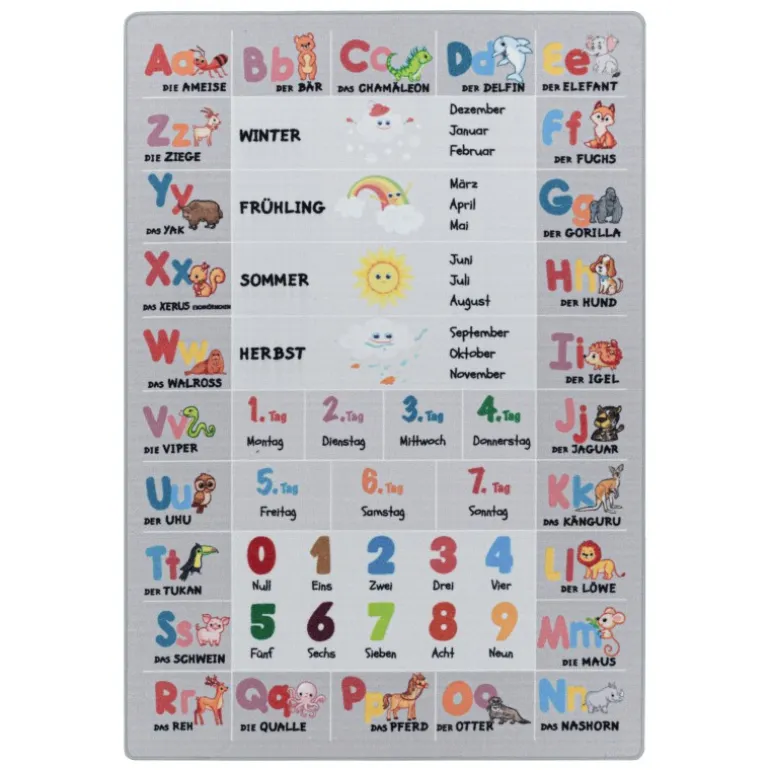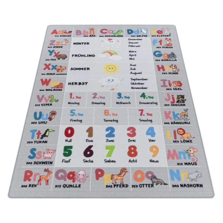 Play Børnetæppe Alfabet – bogstaver – tal – dyr – Grå