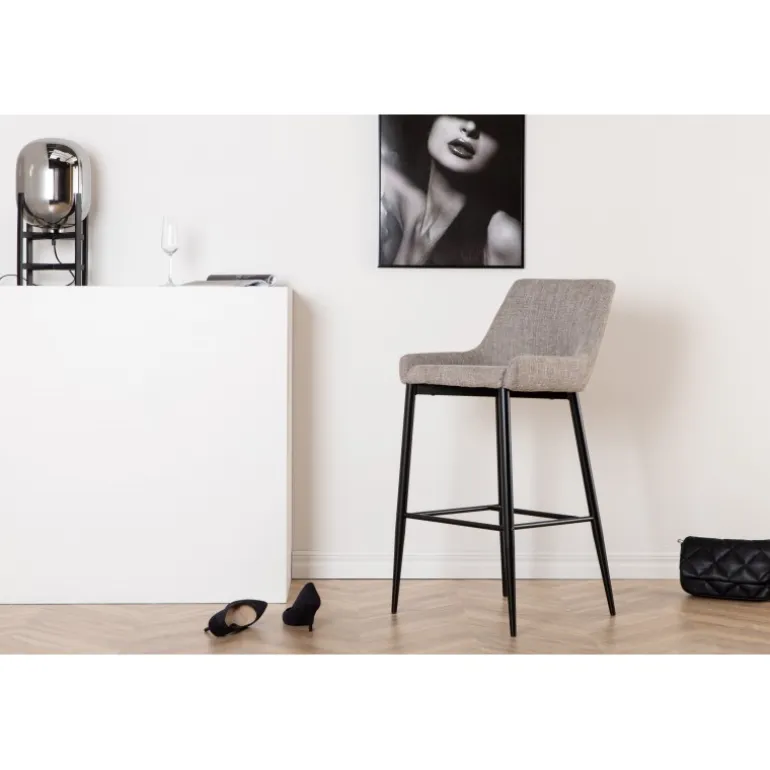 Gå ikke på kompromis med hverken design eller komfort med en barstol fra Plaza-serien! Det velgennemtænkte design indeholder en fuldt beklædt stol i polstret polyester linned i en spættet beige farve og et smalt benstativ i sort pulverlakeret metal med integreret fodstøtte for ekstra komfort. Lettere samling kræves. Plejeråd: Brug tekstilspray til at imprægnere tekstilet, før du tager det i brug. Dette vil også gøre det lettere at fjerne snavs og pletter senere. Fjern pletter med det samme, gnid ikke, men prøv at suge forsigtigt med en klud.