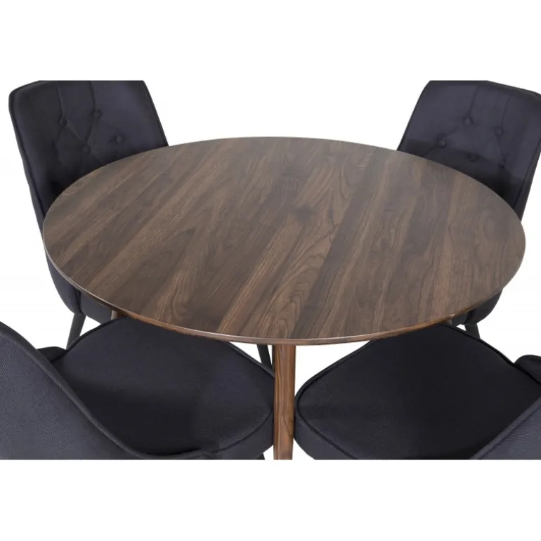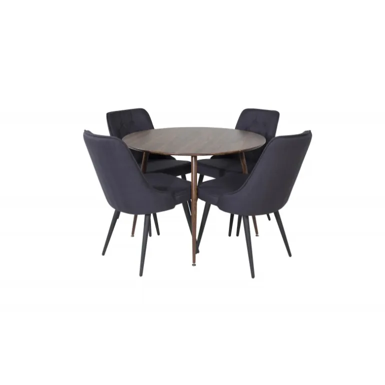 Vores runde spisebord Plaza sikrer, at ingen ender på kanten. Sammen med de indbydende spisebordsstole i Velvet-serien skaber det en kombination, der helt sikkert vil invitere til lange og dejlige stunder omkring middagsbordet med dine kære. Plaza Rund Spisebordssæt er designet med både stil og komfort for øje, og passer perfekt ind i ethvert moderne hjem.