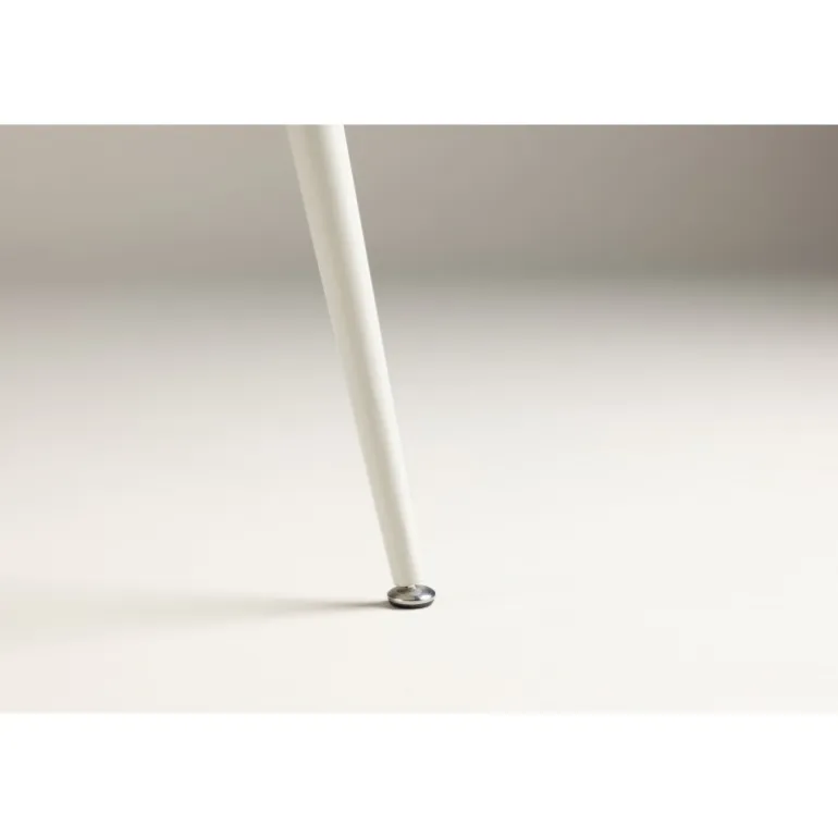 - Rundt spisebordplade i beige MDF og ben i beige stål for et harmonisk og jordnært udseende.