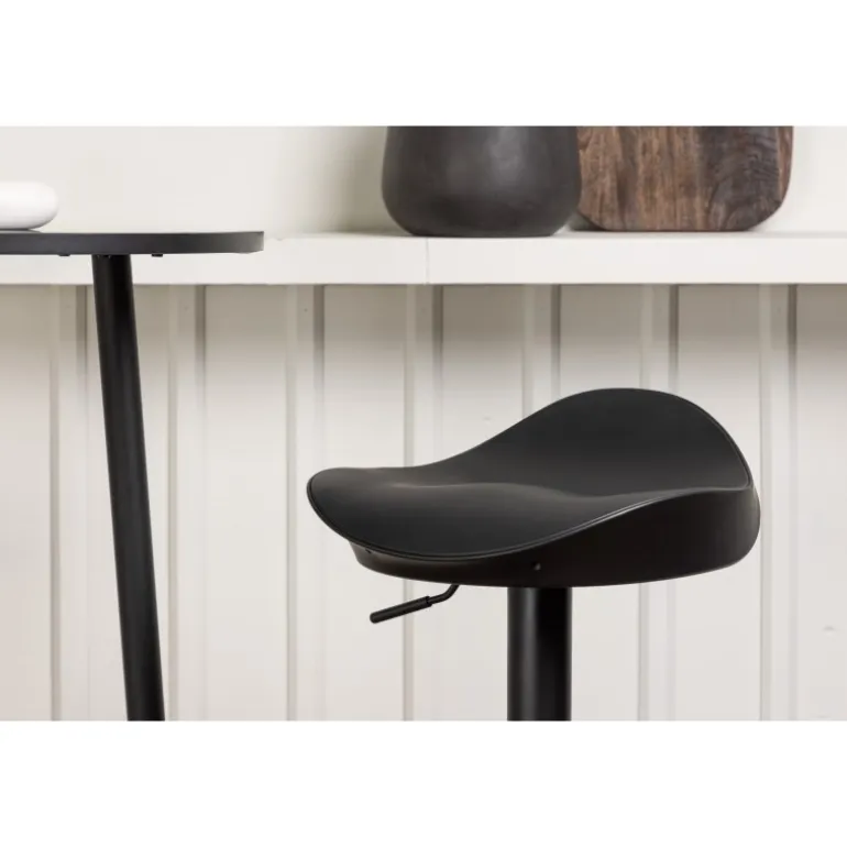 - Komfortable barstole: Sort ståltrumpetfod og sort plast sæde.