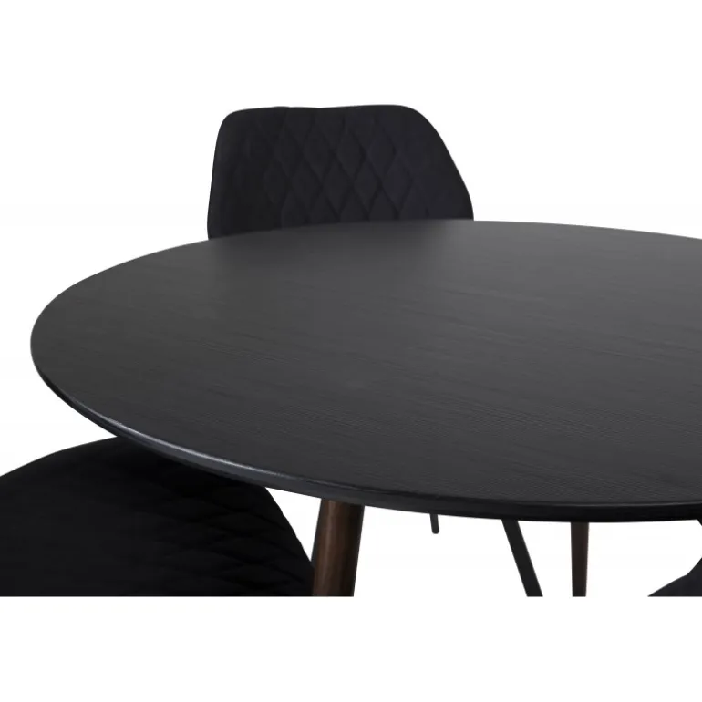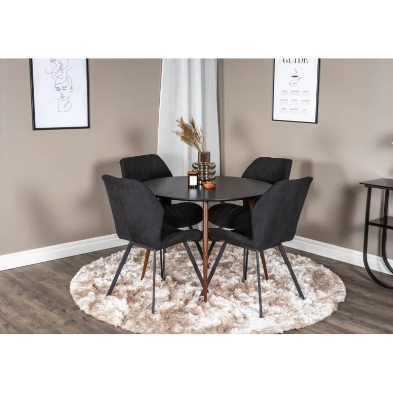 Her har vi et elegant og luksuriøst Spisebordssæt, der er moderne i sit design! Spisebord Plaza i et slankt design, sammen med vores populære velourstole i Gemma-serien – den perfekte kombination for dem, der ønsker en trendy og komfortabel spisestue.