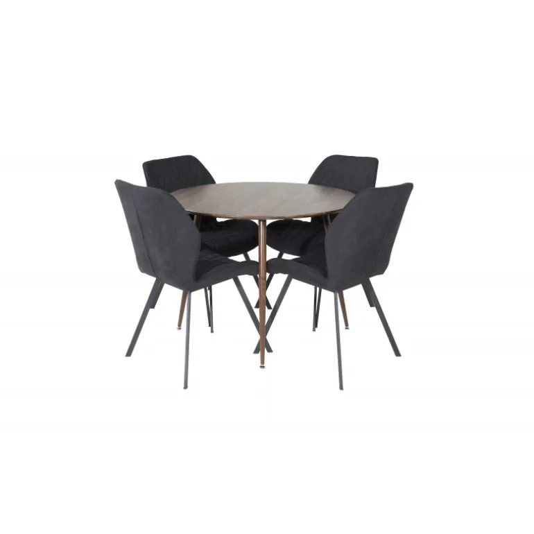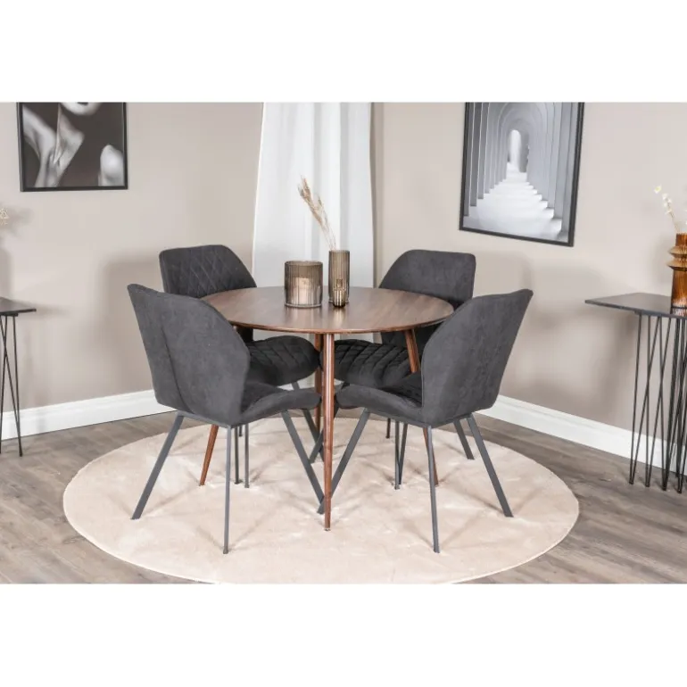 En moderne Spisebordssæt med en indbydende følelse i et enkelt design. Her er vores runde spisebord Plaza kombineret i smukt træ med komfortable spisebordsstole i Gemma-serien. Indret stuen med en familievenlig Spisebordssæt, der sandsynligvis passer lige så godt til dine behov som til din øvrige indretning.