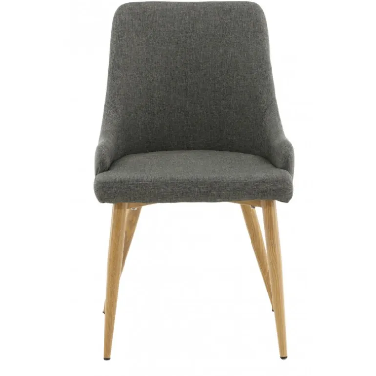 Skab et charmerende midtpunkt i hjemmets hjerte med hjælp fra stilfulde spisestole fra Plaza serien! Den gennemtænkte moderne design har en ramme i egetræs-foliebelagt metal og ryg/sæde i mørkegråt polyesterstof med blød polstring. Lige så flot at se på som komfortabel at sidde på! Lettere samling er påkrævet. Plejeråd: Brug tekstilspray til at imprægnere tekstilet, før du begynder at bruge det; det vil også gøre det lettere at fjerne snavs og pletter i fremtiden. Fjern pletter med det samme, gnid ikke, men prøv forsigtigt at opsuge med en klud.