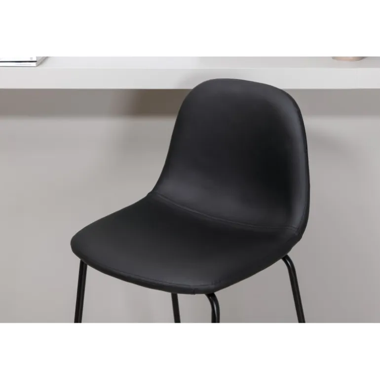 Skab et moderne blikfang, der giver en luksuriøs følelse i hjemmet med barstole fra Polar-serien! Designet er gennemtænkt med en fuldt polstret, elegant stol med en rund ryg og sæde i polstret polyurethanmembran og polyester samt en smal benramme i sort jern med integreret fodstøtte for ekstra komfort. Lettere montering kræves. Plejeråd: PU er godt at rengøre med en blød, fugtet bomuldsklud. Ved svære pletter kan en fugtet bomuldsklud og et middel beregnet til rengøring af bycast og PU bruges først på et ikke-synligt område, da nogle midler kan have forskellige sammensætninger.