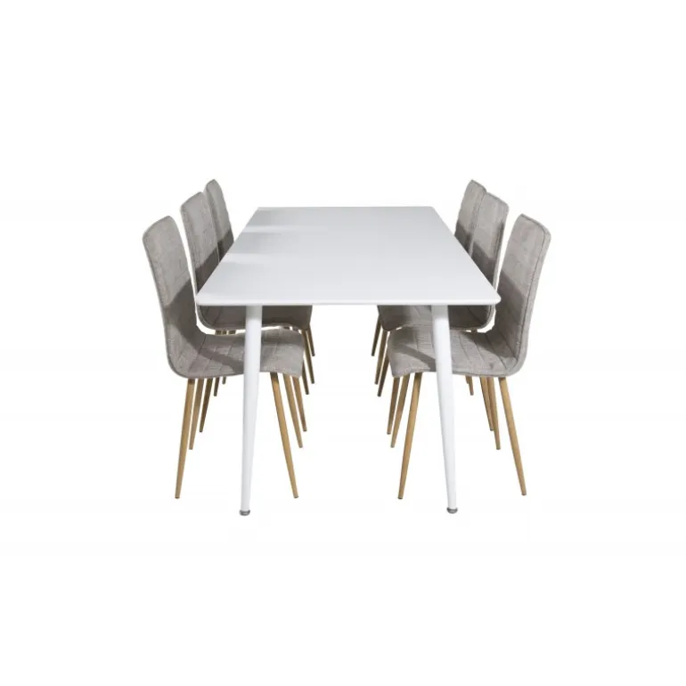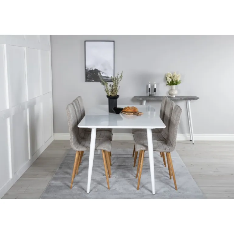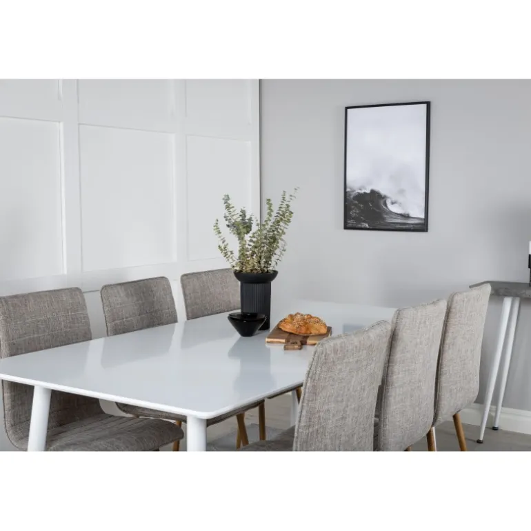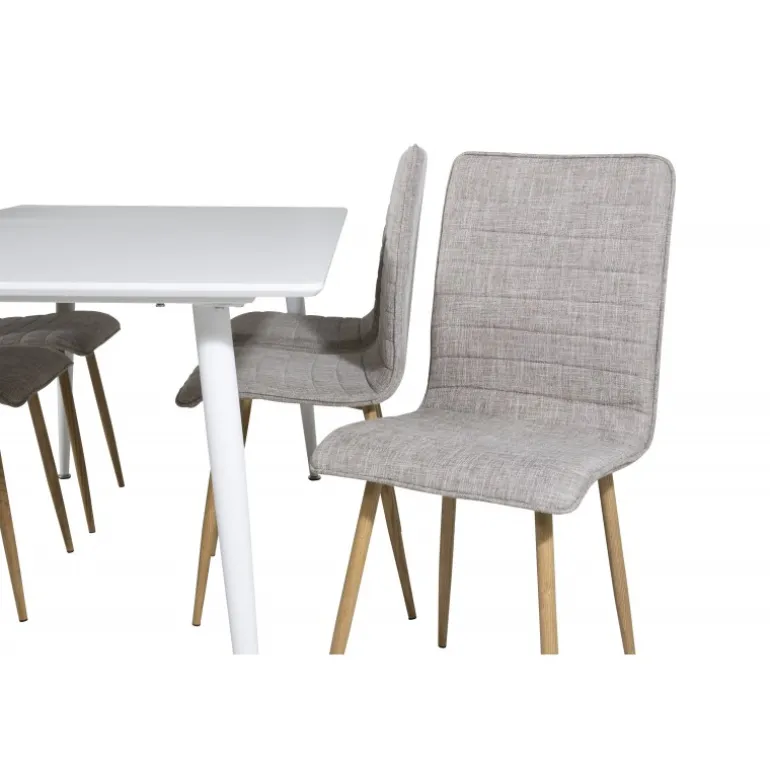 Stilfuldt og løftende Spisebordssæt i et let design! Her kombinerer vi vores spisebord Polar med vores siddevenlige spisebordsstole Windu. Lad hjemmets hjerte blive præget af din nye iøjnefaldende Spisebordssæt. Perfekt til både hverdag og festlige lejligheder, og det moderne design passer ind i ethvert hjem. Polar Rektangulær Spisebordssæt tilbyder både komfort og elegance, hvilket gør det til det ideelle valg for enhver spisestue.