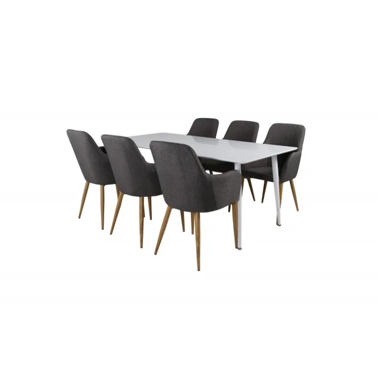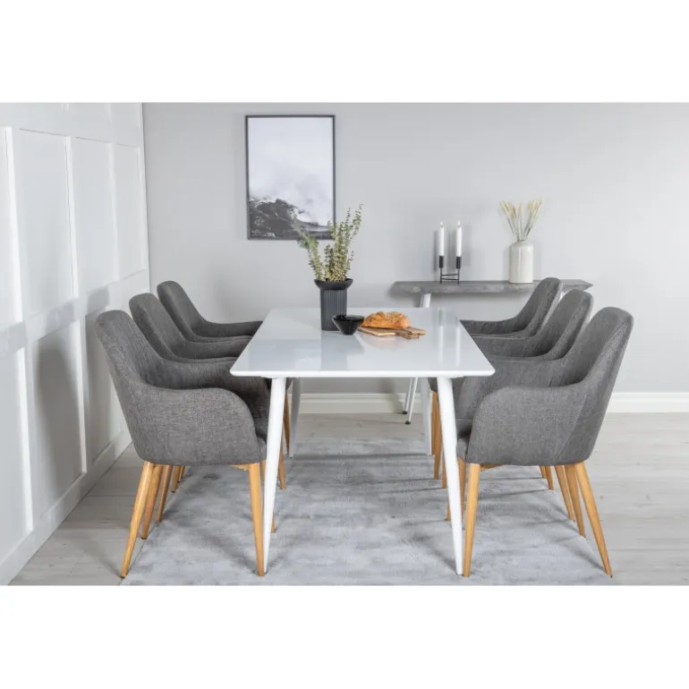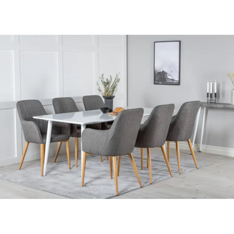 Moderne og hyggeligt! Spisebordet Polar sammen med komfortable spisebordsstole giver dig en Spisebordssæt, du længes hjem til. Stolene er robuste og velpolstrede – her sidder du gerne længe og nyder godt selskab med venner!
