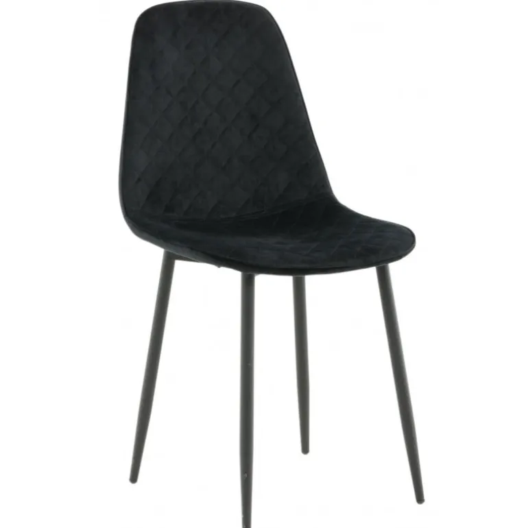 Elegant spisebordsstol med enkelt design og stilfulde detaljer! Spisebordsstolen fra Polar-serien har et gennemtænkt design med en let afrundet ryg og en blød sæde i polstret sort velourstof med dekorative sømme på indersiden, der danner et dekorativt diamantmønster. Benene er i sort pulverlakeret metal. Nogle samling kræves. Sid komfortabelt og skab et moderne fokuspunkt i stuen. Plejeinstruktioner: Brug stofspray til at imprægnere stoffet, før det tages i brug, hvilket også gør det lettere at fjerne snavs og pletter i fremtiden. Fjern pletter straks, gnid ikke, men prøv at absorbere dem forsigtigt med en klud.