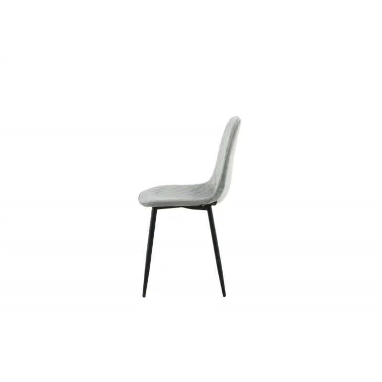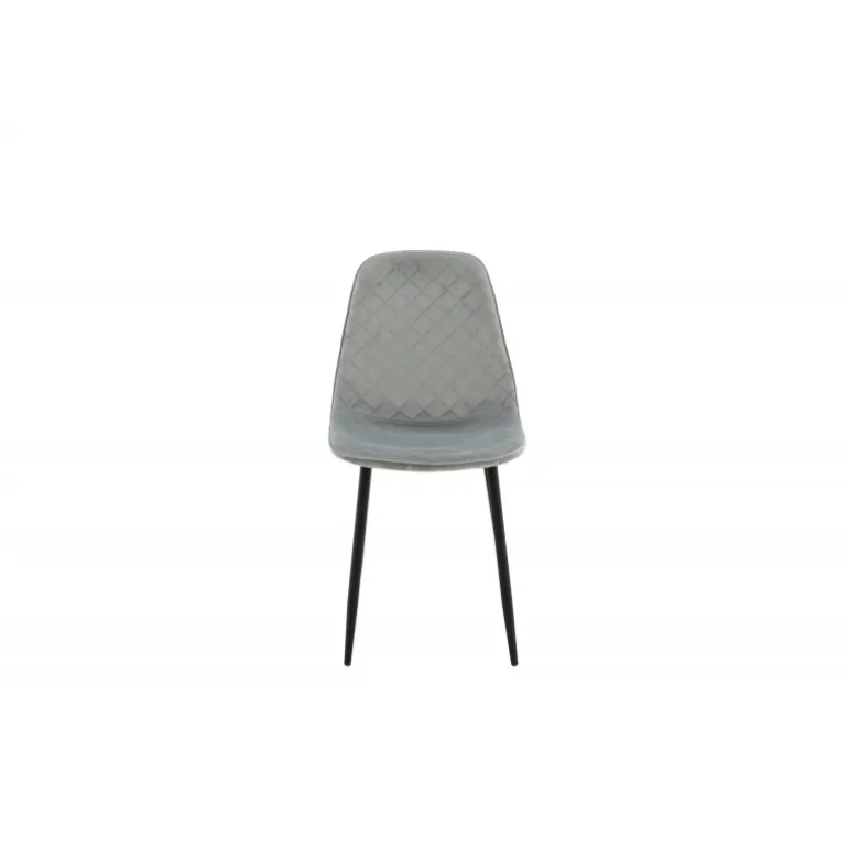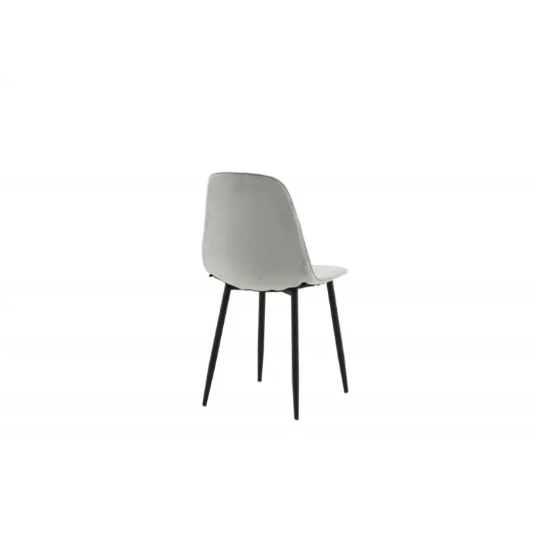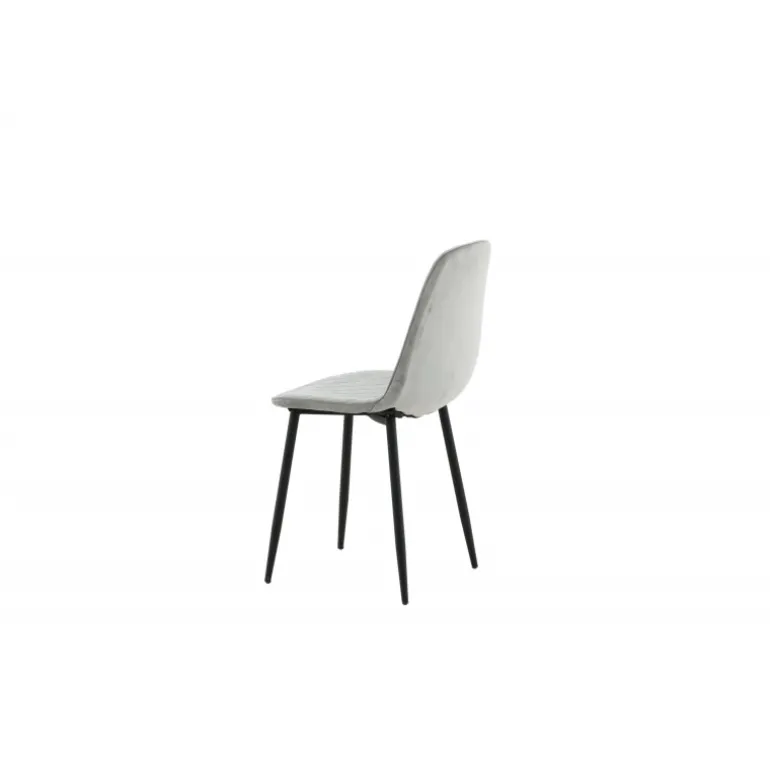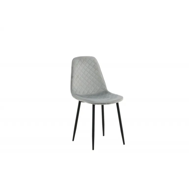 Slank spisestol med enkelt design og stilfulde detaljer! Spisestolen fra Polar-serien har et gennemtænkt design med en let afrundet ryg og sæde i polstret grå fløjlsstof med dekorative sømme på indersiden, der danner et dekorativt ternet mønster. Benene er i sort pulverlakeret metal. Nogle samling kræves. Sid behageligt og skab et moderne fokuspunkt i stuen. Plejevejledning: Fløjl har en tendens til at udvikle indtryk, når luven flader ud. Disse indtryk kan få stoffet til at se slidt ud, hvilket er normalt for denne type materiale. Fjern pletter straks, gnid ikke, men prøv at suge dem forsigtigt op med en klud.