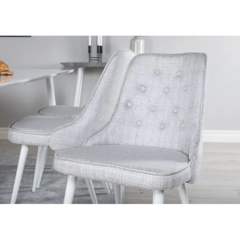 Polar Rektangulært Spisebordssæt kombinerer enkelhed og klassisk design med komfortable og siddevenlige Velvet-stole. Dette elegante Spisebordssæt tilføjer et strejf af luksus til enhver indendørs spisestue. Bordpladen er lavet af robust MDF og stolene er polstret med blødt polyester, hvilket sikrer både stil og holdbarhed. Tilgængelig i hvid og grå for at passe til enhver indretning.
