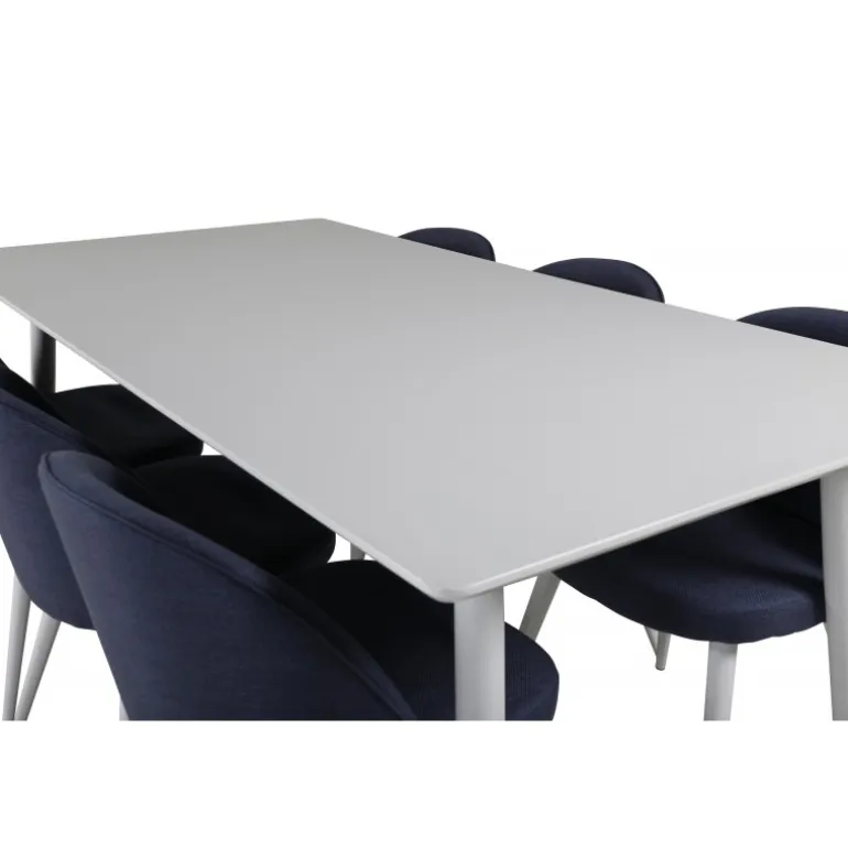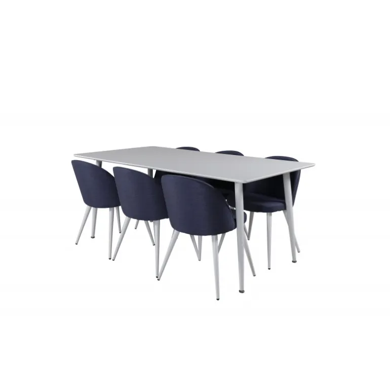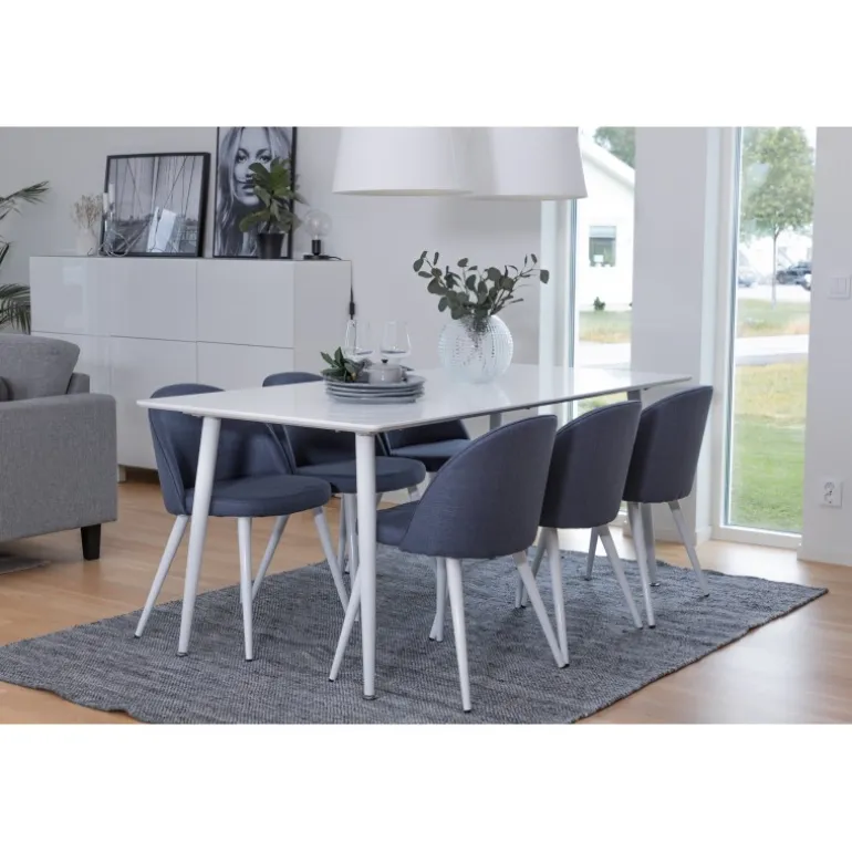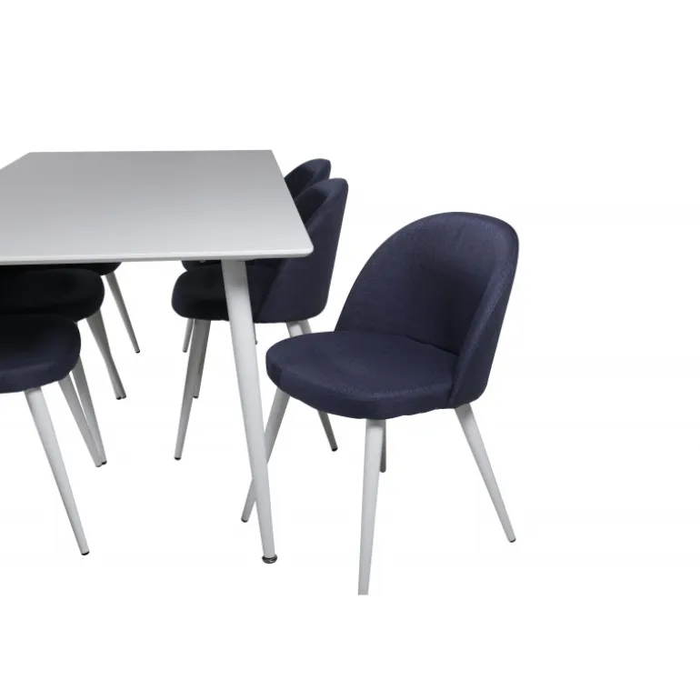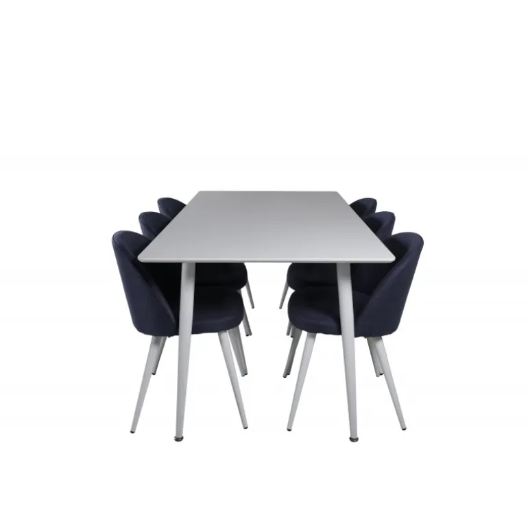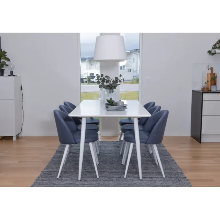 Lad dette smukt matchende madgruppe med et moderne touch blive et naturligt samlingssted i dit hjem. Spisestolene Velvet tilbyder god komfort, og spisebordet Polar sikrer, at der er plads til alle. Uanset om det er en familiemiddag eller en hyggelig aften med venner, vil dette sæt opfylde dine behov og tilføje stil til din spisestue.