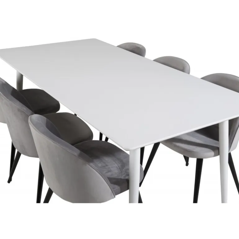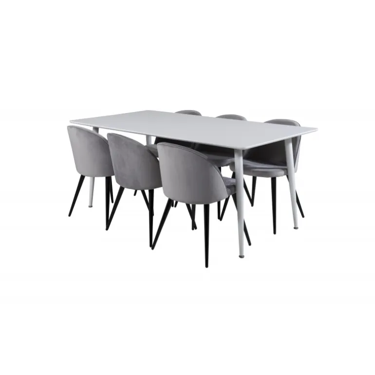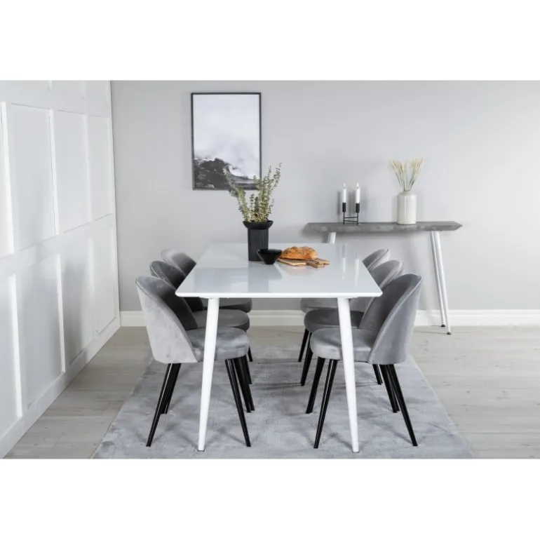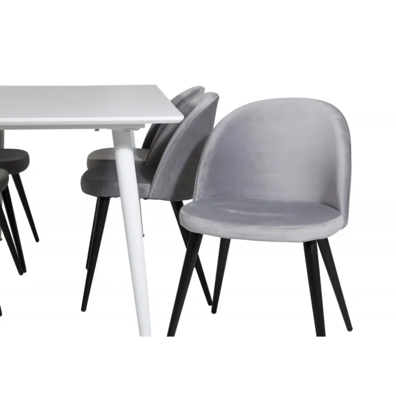 Vores enkle og klassiske spisebord Polar sammen med vores siddevenlige spisestole Velvet. Her får du en luksuriøs og stilfuld kombination, der holder over tid. Inviter til middag og socialt samvær med dette sæt, der emmer af elegance og komfort. Perfekt til både daglig brug og særlige lejligheder.