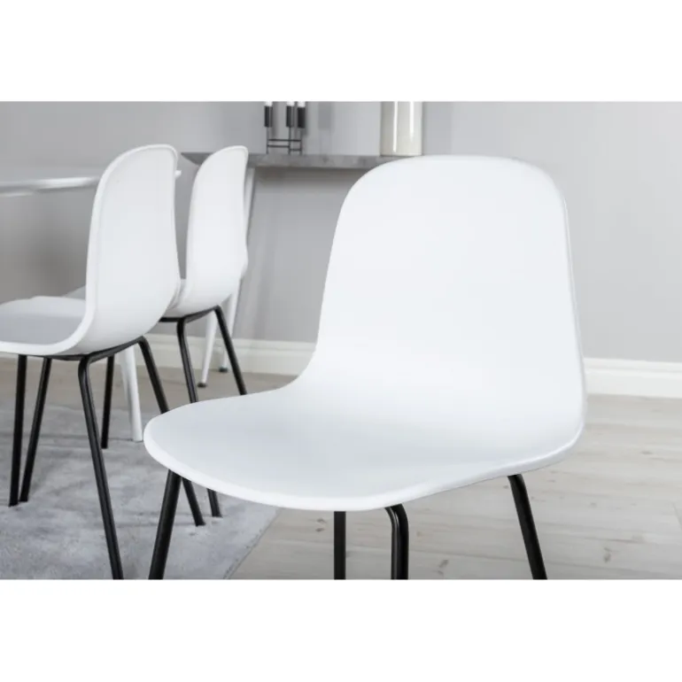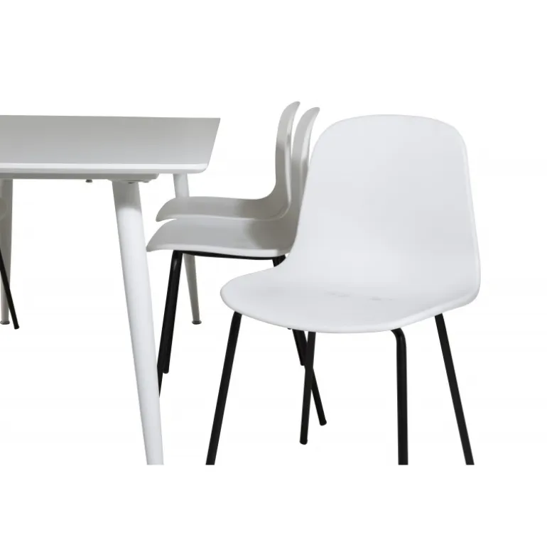 Vores enkle og klassiske Polar spisebord kombineret med de moderne Arctic spisebordsstole udgør et stilfuldt sæt, der holder over tid. Perfekt til middage og socialt samvær i dit hjem. Hvid MDF bordplade og højkvalitets plaststole sikrer både holdbarhed og elegance. Fås i sort og hvid.