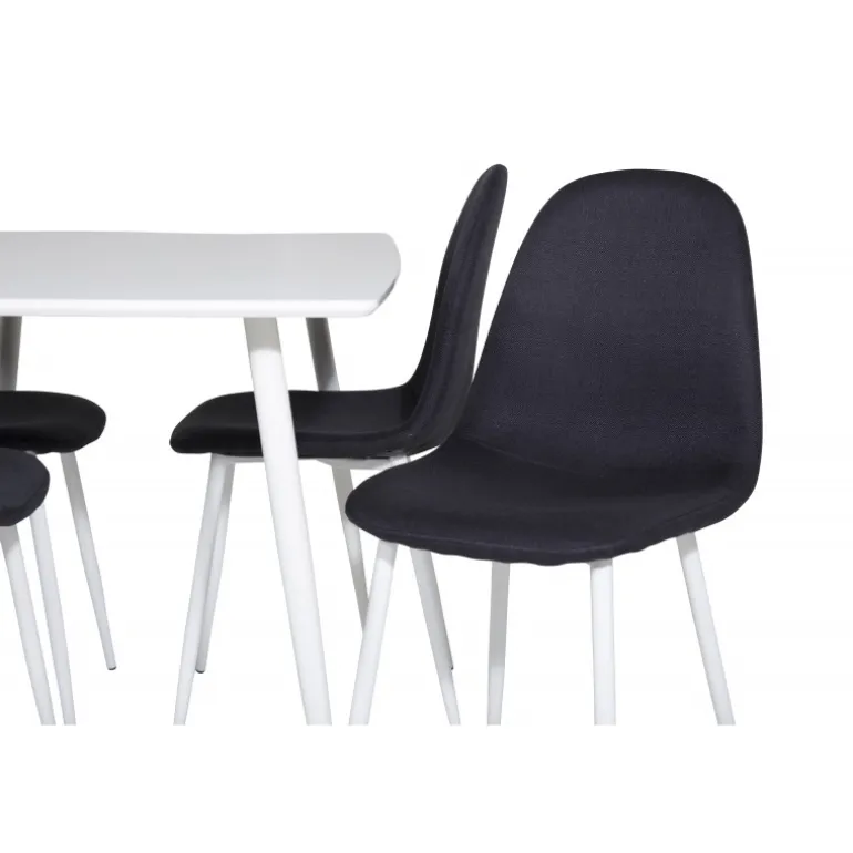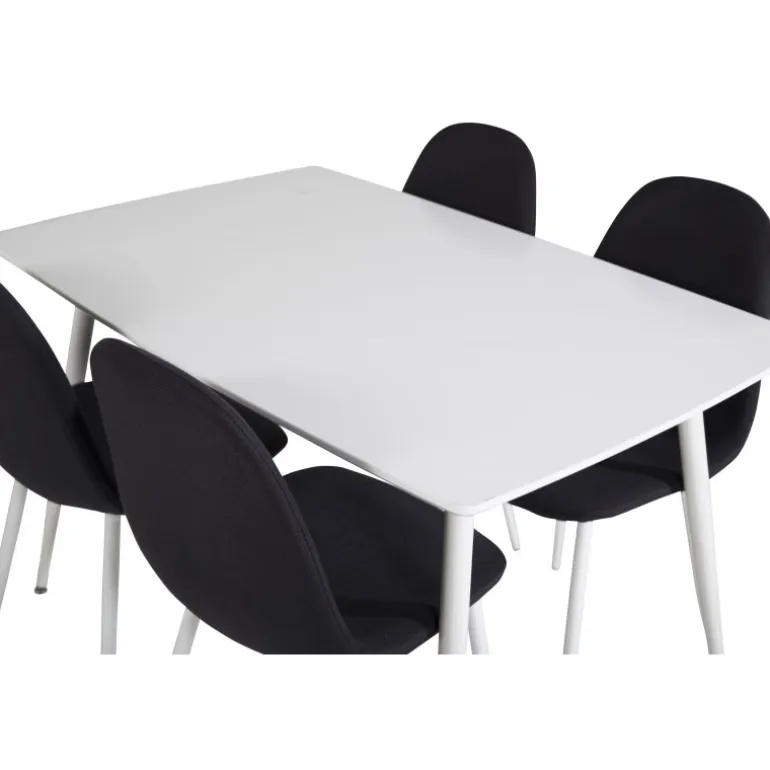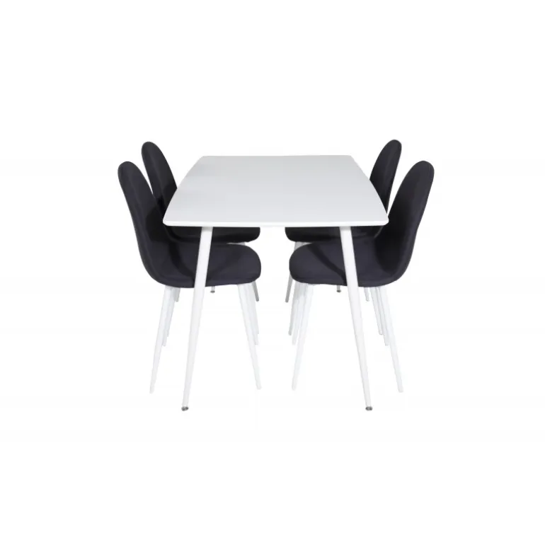 Vores enkle og klassiske spisebord Polar sammen med vores siddevenlige spisebordsstole i samme serie. Her får du en stilfuld og tidløs kombination, der holder over tid. Inviter til middag og socialt samvær med dette elegante sæt. Montering kræves, men resultatet er værd at vente på. Fås i farverne sort og hvid.