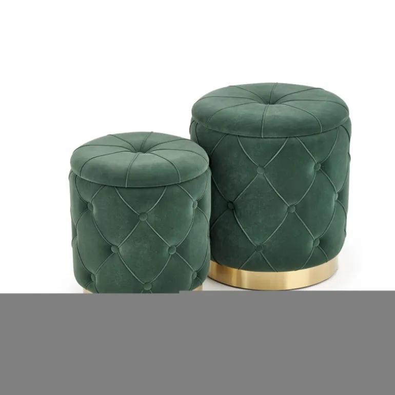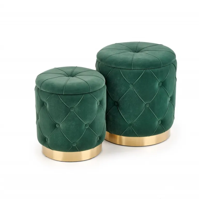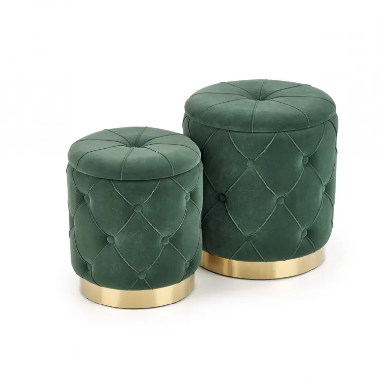 Oplev kombinationen af stil og funktionalitet med POLLY sæt med to skamler i en elegant mørkegrøn farve. Disse skamler er perfekte til både stue og kontor, hvor de tilføjer et strejf af luksus og komfort. Fremstillet af holdbart stof og kromstål, sikrer disse skamler langvarig brug og stabilitet. Med dimensioner på 40/44 og 33/38 cm, kan de let integreres i enhver indretning. Køb POLLY skamler for at forbedre dit hjem med moderne design og praktisk anvendelighed.