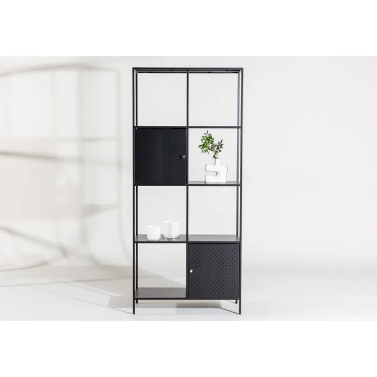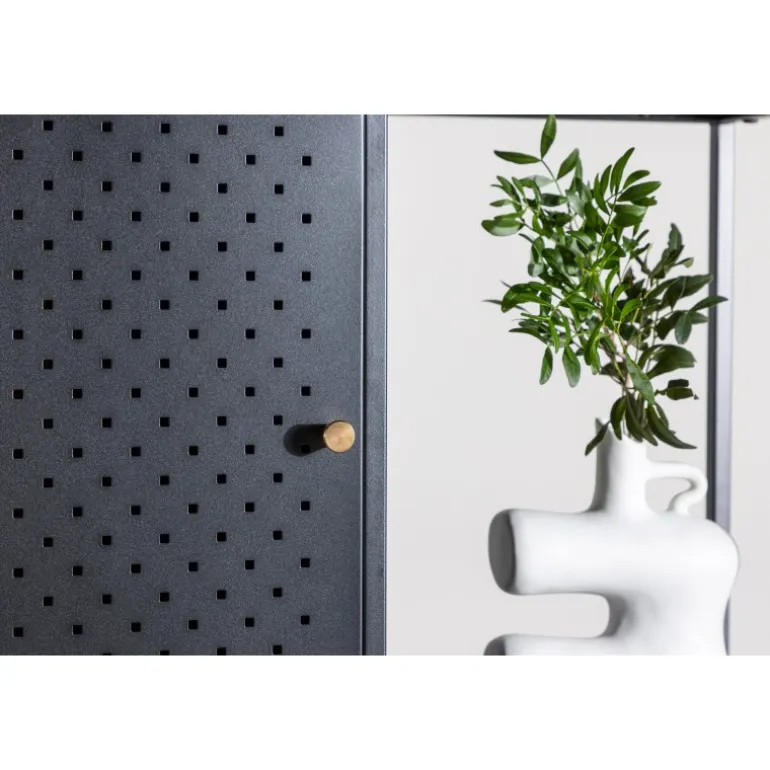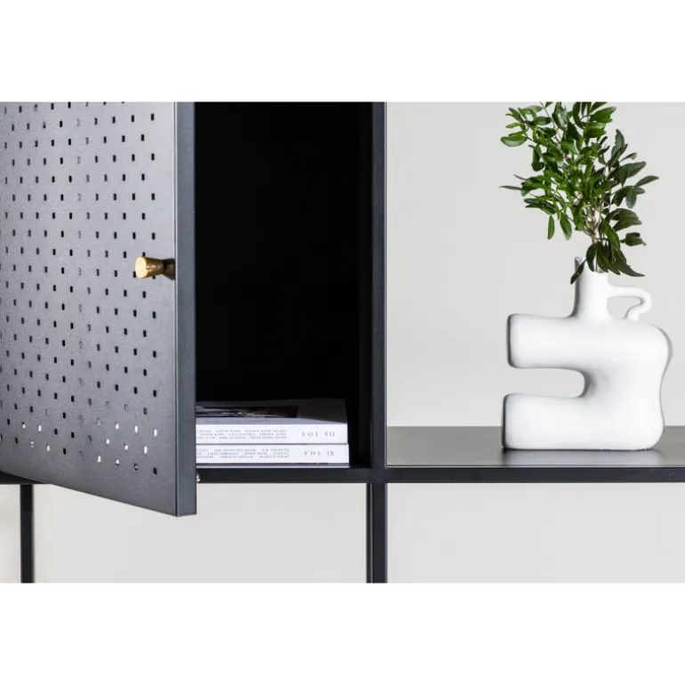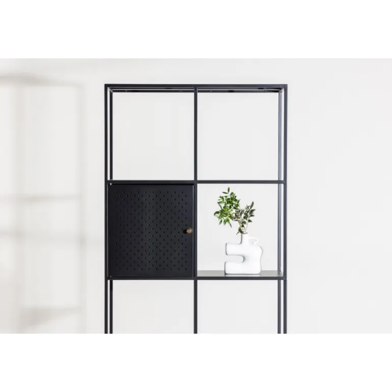 Porto Skuffe er vores fantastiske høje hylde i sort stål og skandinavisk stil! Denne enestående hylde er ikke blot et opbevaringsmøbel, men også en kilde til bekvemmelighed og elegance, der vil løfte din indretning til næste niveau. Med sit høje og smalle design tilbyder denne hylde en unik kombination af åbne og lukkede opbevaringsløsninger på sine fire rummelige hylder. To skabe placeret i forskellige højder med elegante messingfarvede greb giver et perfekt sted at gemme småting og skabe en organiseret overflade. De åbne hylder er designet til at fremvise dine smukke dekorationer eller lysestager, hvilket bringer en følelse af hygge. Denne hylde bliver meget mere end blot opbevaring; det er en mulighed for at forme din indretning med både praktisk og æstetisk fokus. Uanset om du sigter efter moderne minimalisme eller en varm og indbydende atmosfære, vil Porto Skuffe hjælpe dig med at opnå dine mål. Tag inspiration fra vores billeder og lad din kreativitet flyde!