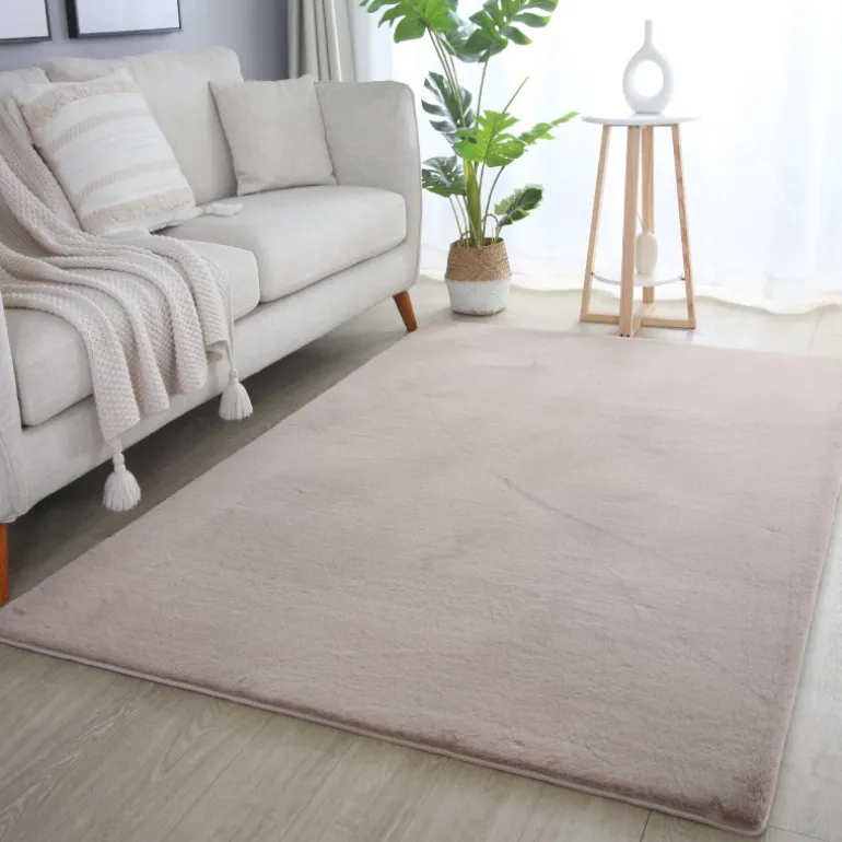Pouffy Shaggy tæppe Ensfarvet - Beige