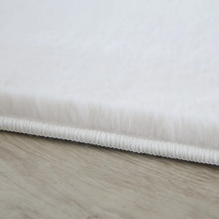 Pouffy Shaggy tæppe Ensfarvet - Creme