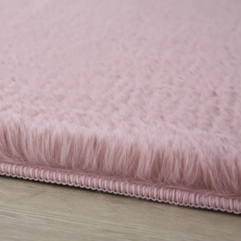Pouffy Shaggy tæppe Ensfarvet - Rosa