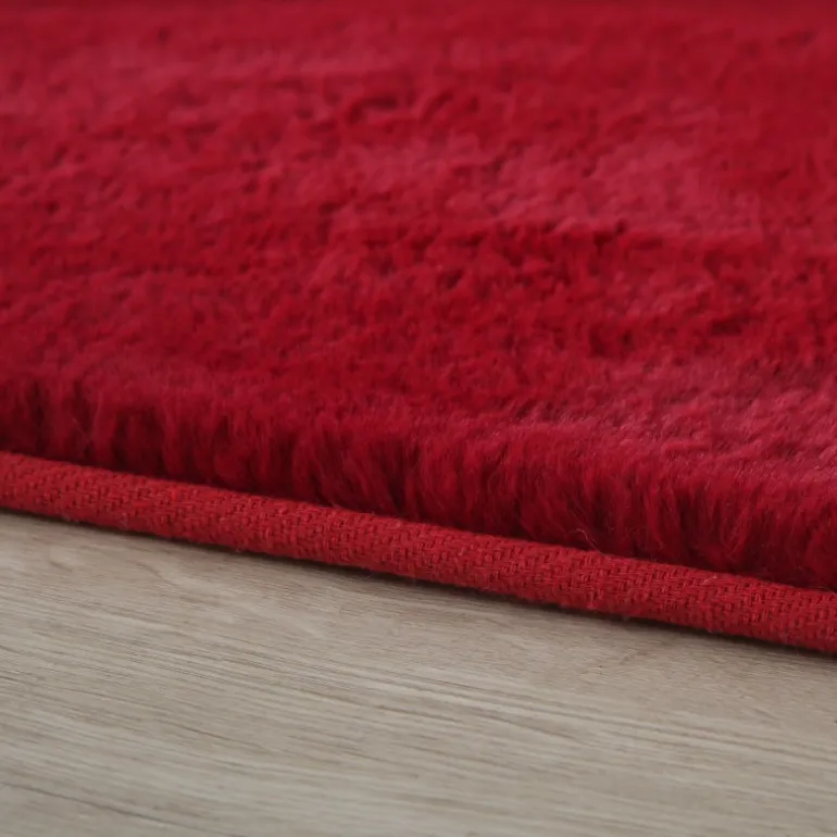 Pouffy Shaggy Tæppeløber Ensfarvet - Rød