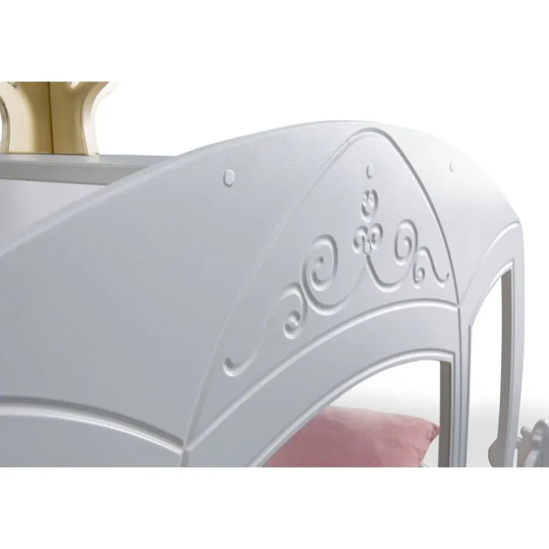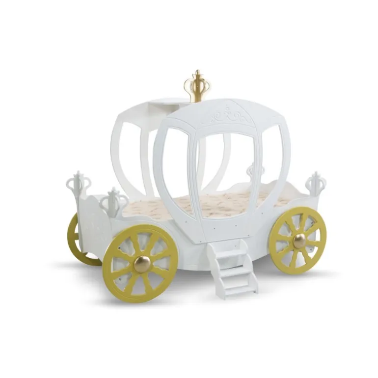 Gør drømmen om et kongeligt eventyr til virkelighed med denne magiske børneseng formet som en prinsessekaret. Med sine fine detaljer og indbyggede LED-lys, skaber sengen en fortryllende atmosfære i børneværelset. Fremstillet i malet MDF, er den både stabil, sikker og nem at vedligeholde.