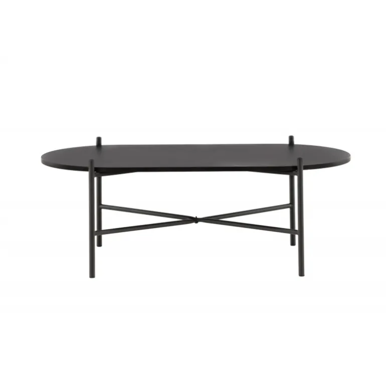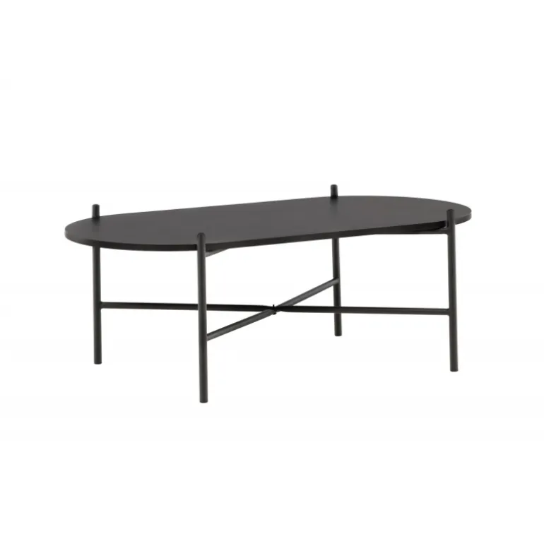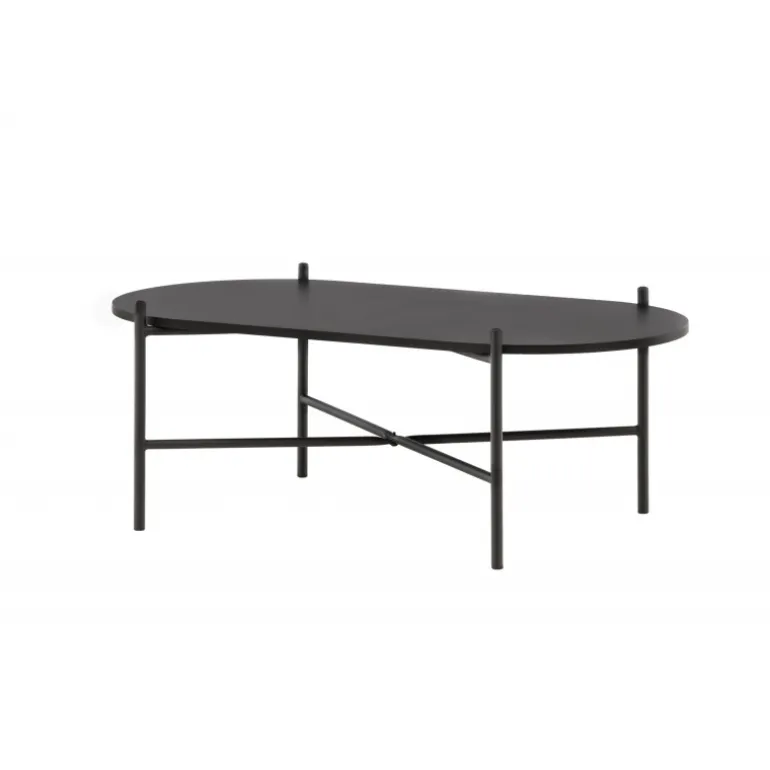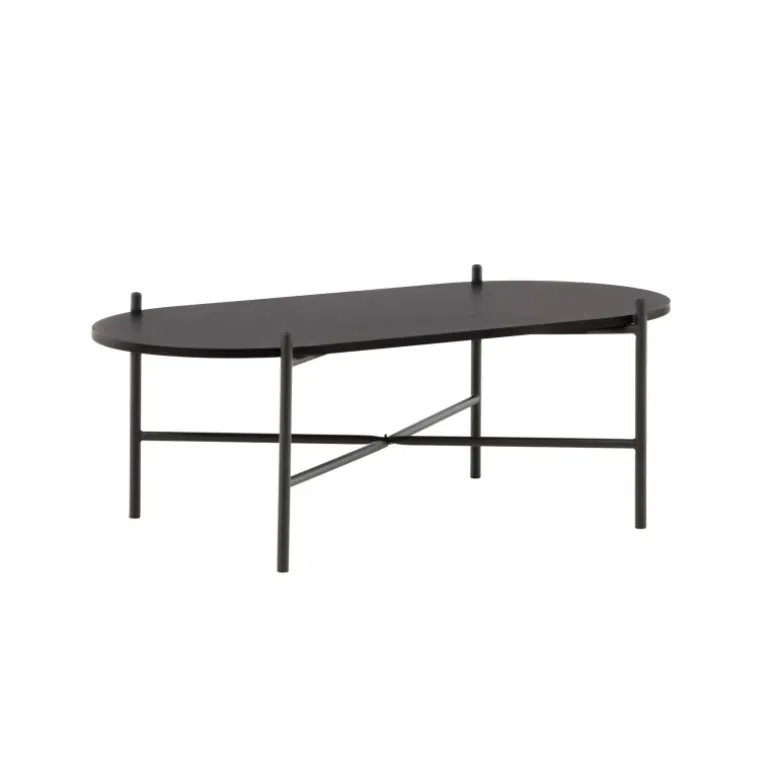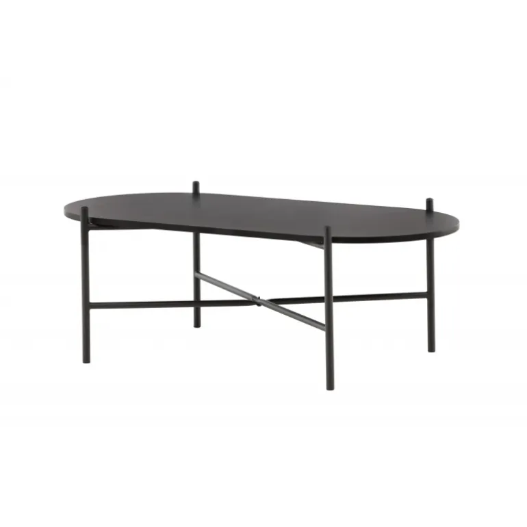 Pueblo sofabord har et iøjnefaldende, skandinavisk design og en generøs størrelse, der gør det perfekt foran den større sofa! Bordet har en oval bordplade i sort MDF og en minimalistisk ramme i sort stål. Bordpladen tilbyder masser af plads til både dekorationer og andre ting, og den luftige udskæring bidrager til en stilfuld atmosfære i rummet. Placer det på det hyggelige tæppe foran sofaen og hæv stilniveauet i hjemmet!