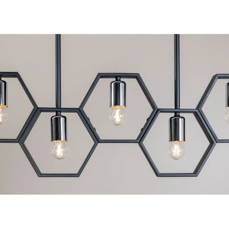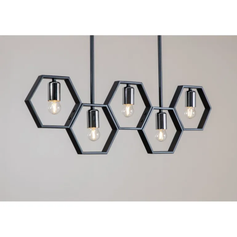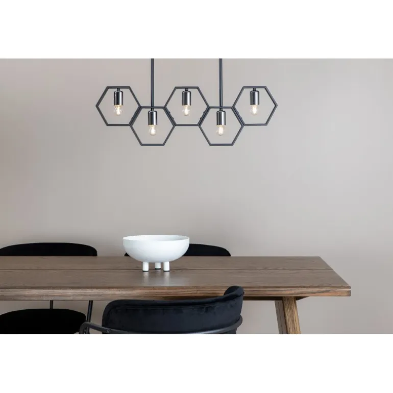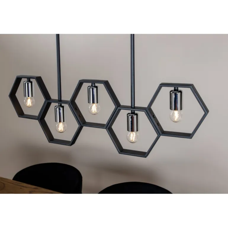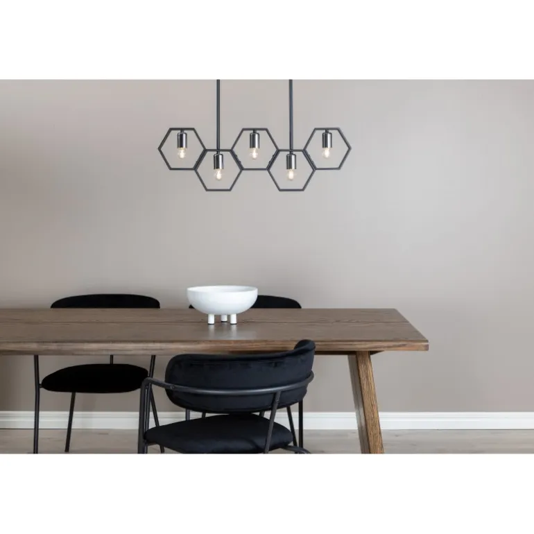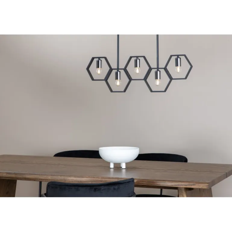 Med Queen B får du en unik og stilfuld loftlampe, der skiller sig ud fra mængden! Lampen har en dekorativ ramme lavet af sort stål og fire mindre lyskilder. Med denne lampe får du både en behagelig glød og en smuk indretningsdetalje til hjemmet. De stilfulde farver gør, at lampen nemt matcher med anden indretning, men den gør sig klart bedst over spisebordet!
