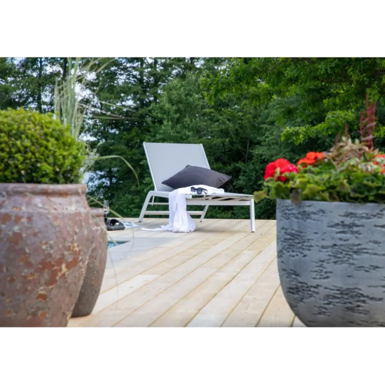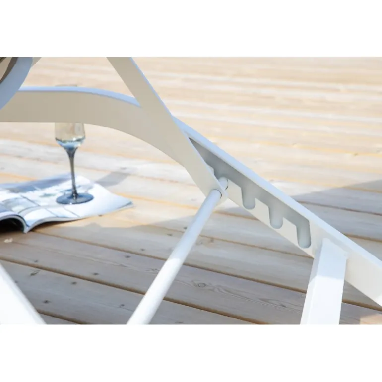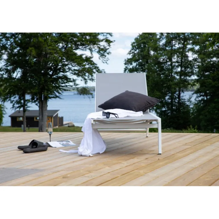 Nyd solen, læs en bog eller lyt til en podcast på den perfekte solseng. Ramos Solseng, i hvid og grå, er fremstillet af sortlakeret aluminium og textilene. Den har en justerbar rygstøtte, så du kan tilpasse den til din komfort.