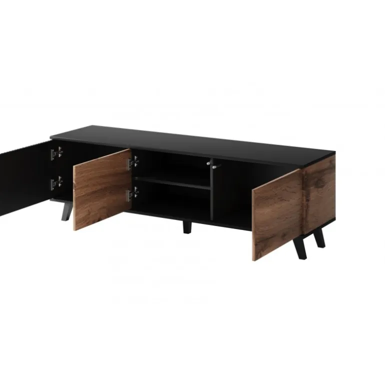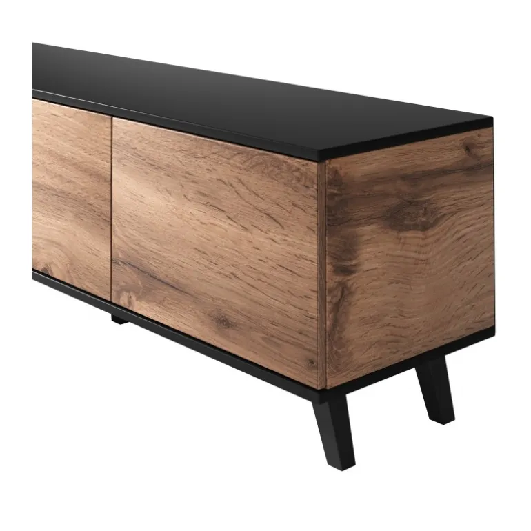 RANDOM RTV-1 tv-bord er den perfekte kombination af stil og funktionalitet. Med dimensionerne 150/40/47 cm passer den ideelt til enhver stue og tilbyder rigelig plads til dit TV og andet udstyr. Fremstillet af lamineret MDF, lamineret spånplade og polypropylen, sikrer denne stander både holdbarhed og en elegant finish i wotan eg/Sort farve. Med denne tv-bord får du ikke kun et praktisk møbel, men også et stilfuldt element, der forøger æstetikken i dit hjem.