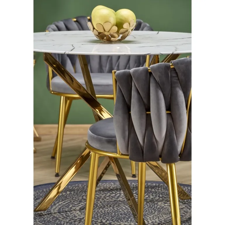 Oplev elegance og holdbarhed med RAYMOND 2 bord, der kombinerer tidløst design med moderne materialer. Dette bord har en smuk overflade i hvid marmor og ben i glitrende guld, som giver et luksuriøst touch til ethvert rum. Med dimensionerne fi100/73 cm er det perfekt til både spisestuen og stuen. RAYMOND 2 bord er fremstillet af højkvalitets glas og kromstål, hvilket sikrer langvarig brug og stilfuldt udseende.