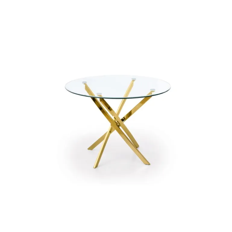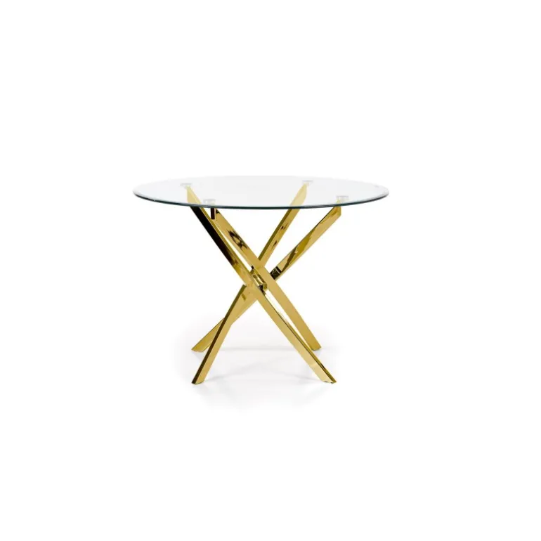 Oplev elegance og modernitet med dette RAYMOND bord. Bordpladen i glas er både stilfuld og funktionel, mens benene i guld tilføjer et luksuriøst touch til ethvert rum. Med dimensionerne fi100/73 cm passer dette bord perfekt til både små og store rum. Materialet af glas og kromstål sikrer holdbarhed og lang levetid. Dette bord kommer i to kasser og er let at samle. Perfekt til både daglig brug og særlige lejligheder.