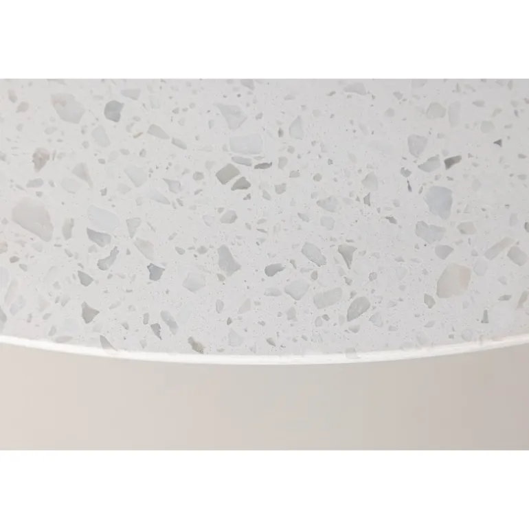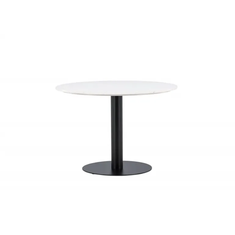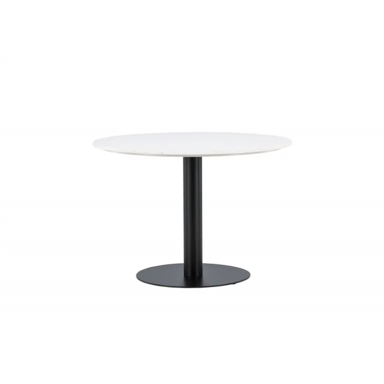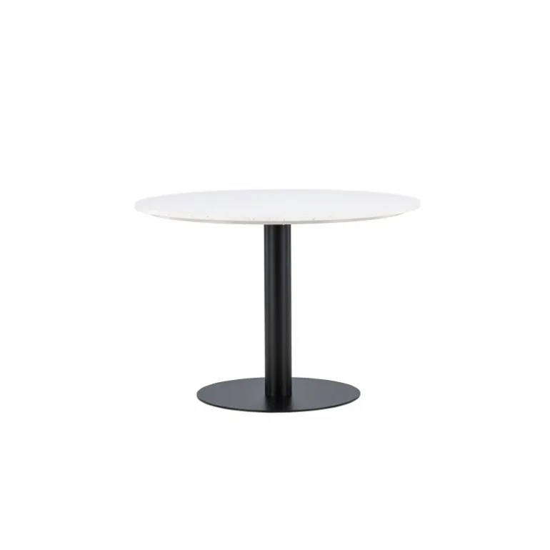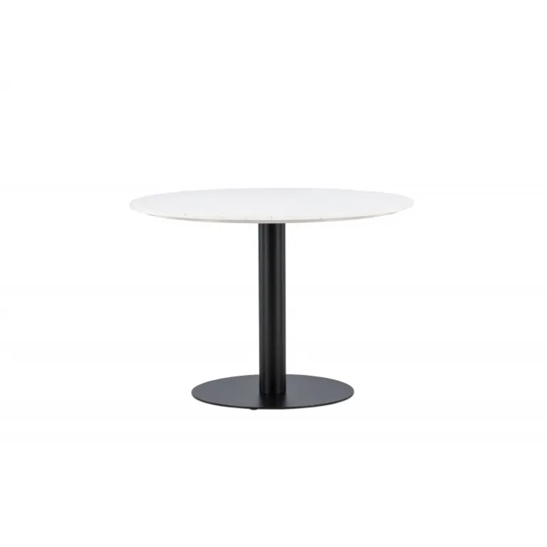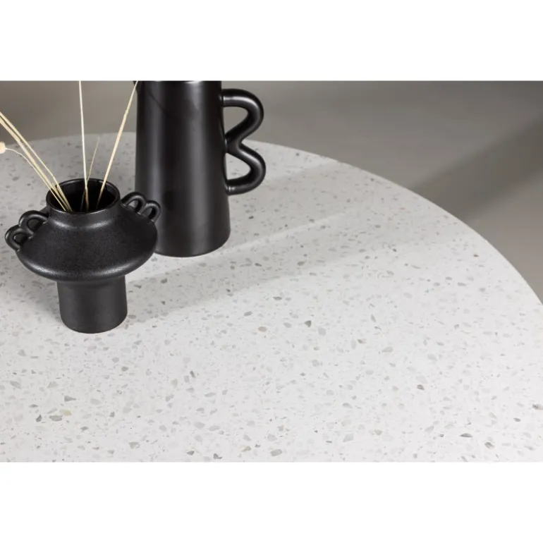- Moderne design: Smukt rundt spisebord i terrazzo med hvid finish og sort metalramme.