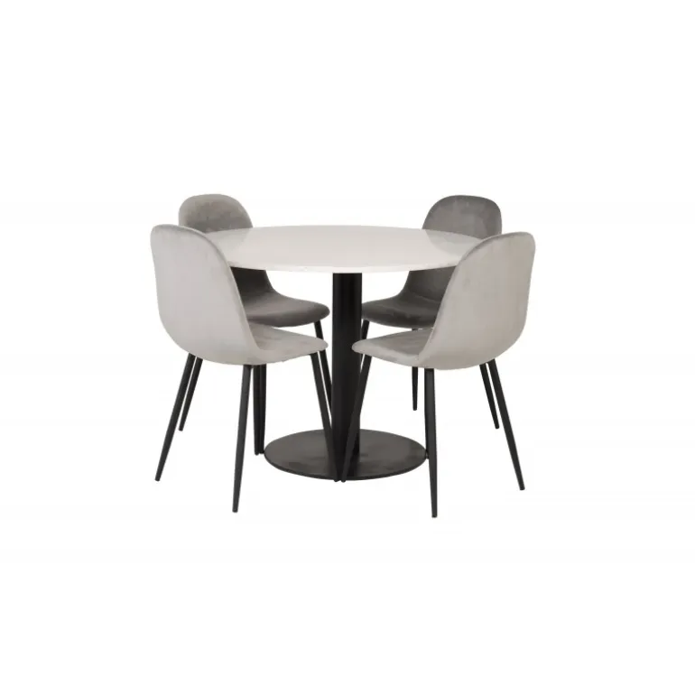 Oplev elegance og komfort med Razzia Rundt Spisebordssæt. Dette sæt kombinerer det stilfulde Razzia spisebord med de komfortable Polar spisebordsstole. Perfekt til lange, hyggelige middage med familie og venner. Med et moderne design og robuste materialer som bøgetræ, skum og stål, er dette sæt både holdbart og nemt at vedligeholde. Tilføj et strejf af luksus til din spisestue med dette unikke spisebordssæt.